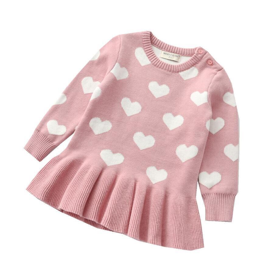 新作 ベビーガール衣装ラブニットドレス秋冬ウールニットセーター幼児ベビードレスガールズドレス子供服Vestidos