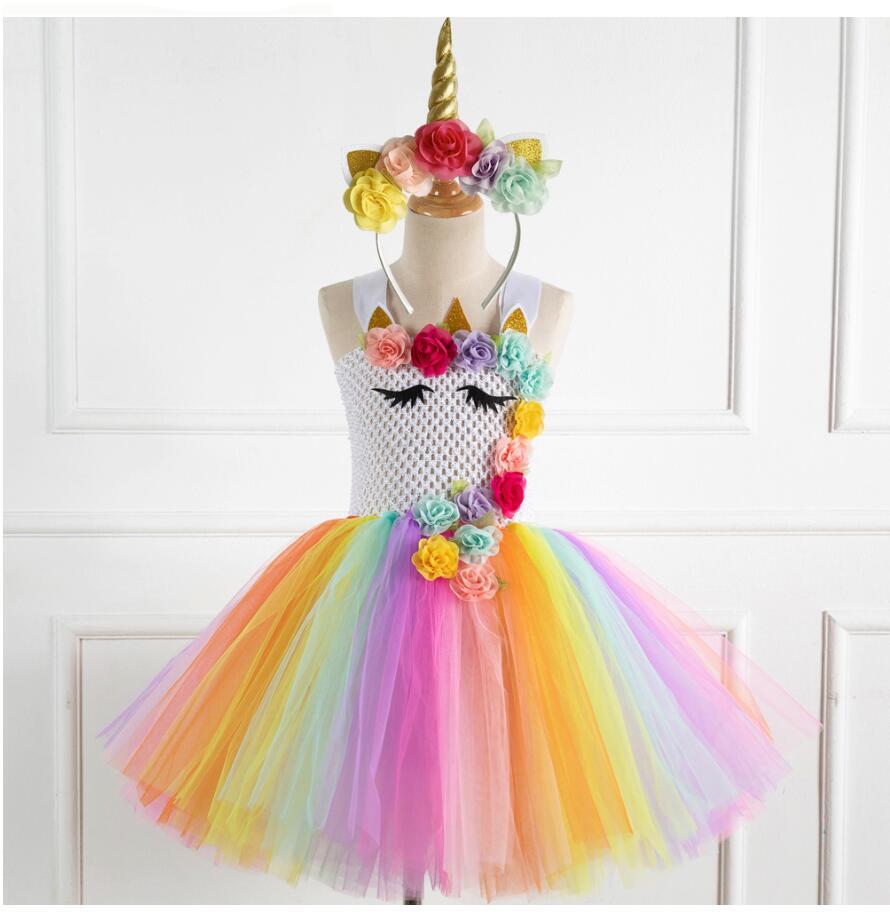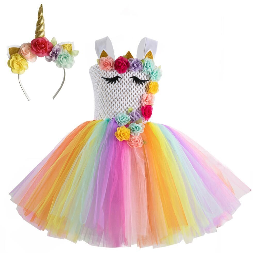 新作 女の子ユニコーンツツドレスセットGilrsコスプレ誕生日レインボー結婚披露宴子供Vestidos