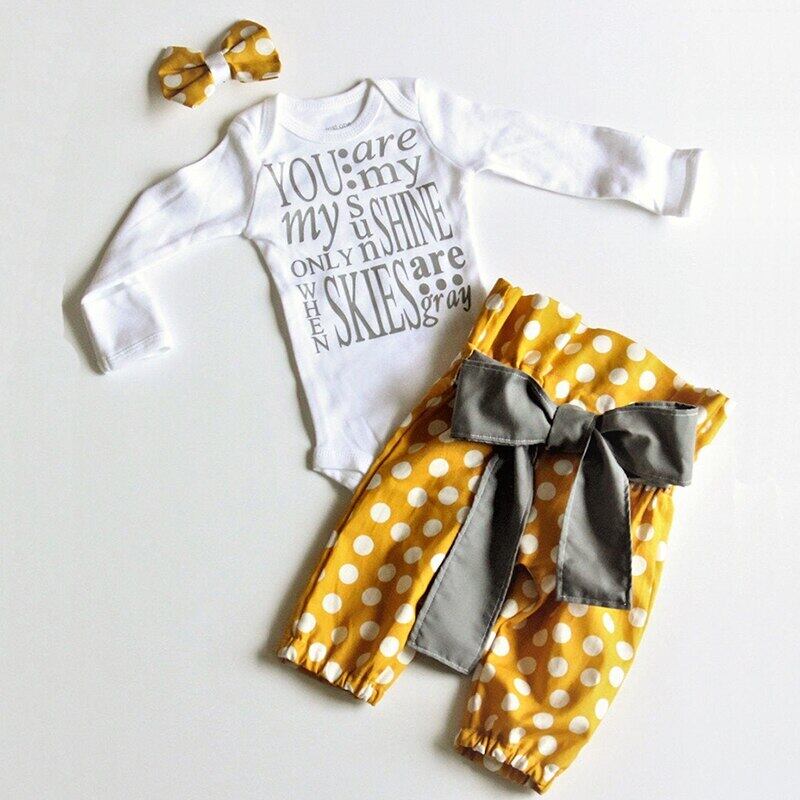 新作 秋冬ベビーガール幼児長袖トップスロンパースドットボウノットパンツレギンス3点衣装服0-24M