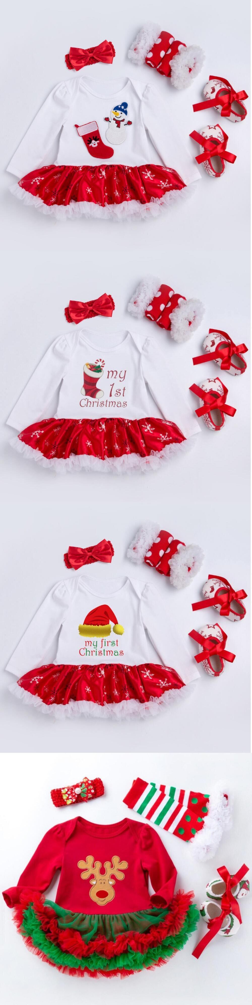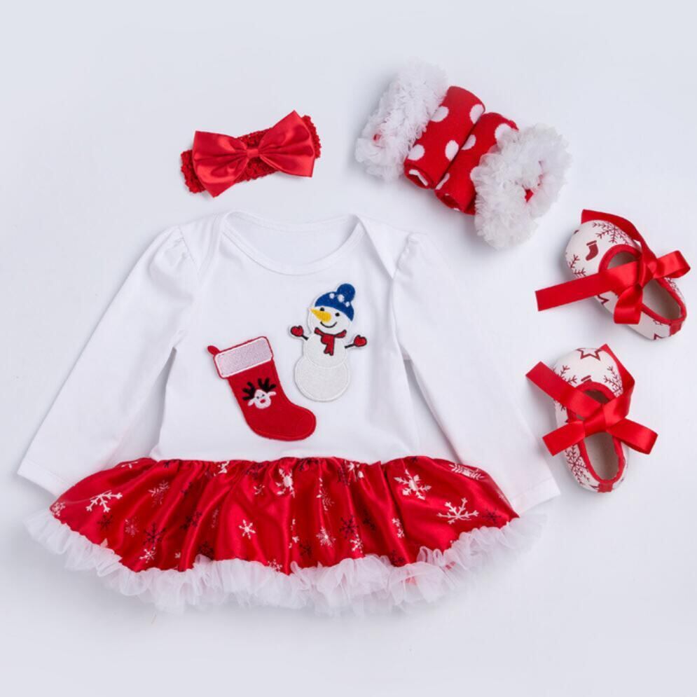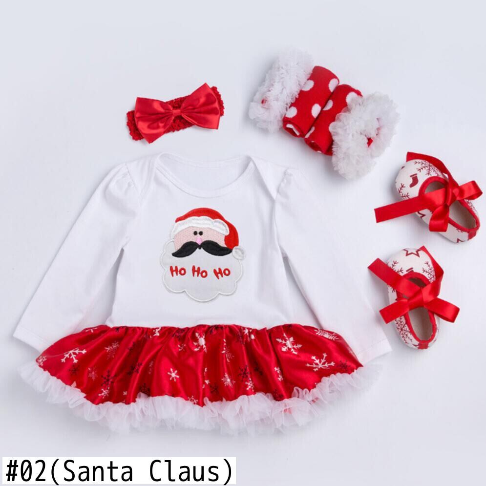 新作 クリスマスギフト4個セット生まれのベビーガールズドレスコットンメッシュフリルガールツツドレス幼児1stクリスマスドレス