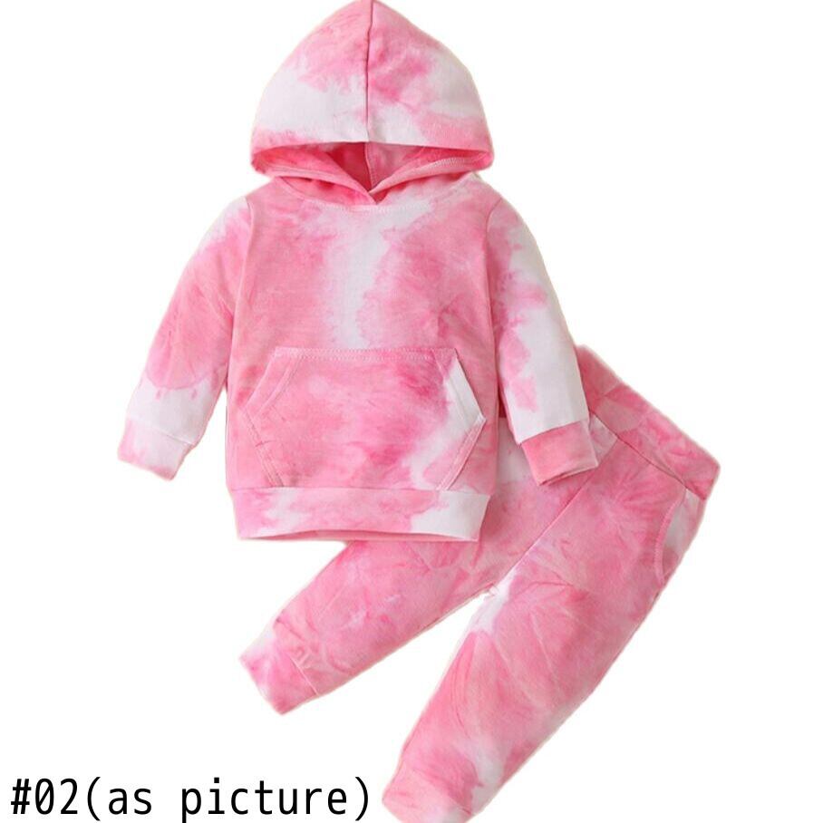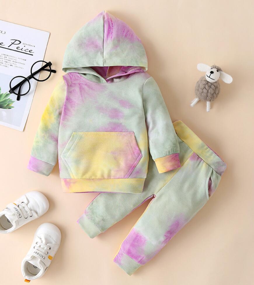 新作 秋生まれのベビーボーイズガールズスーツ長袖絞り染めプリントパーカー+パンツ2点幼児キッズ子供用トラックスーツセット