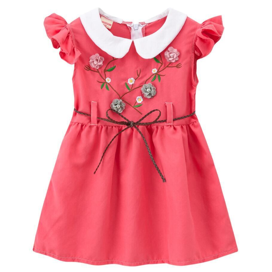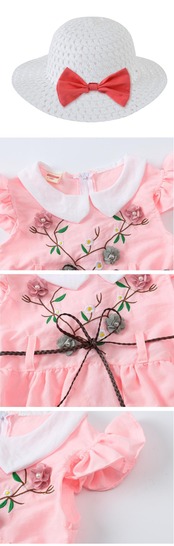 新作 ベビーガールズドレスコットン刺繍サマーサンドレスキッズフラワードレス+帽子幼児子供服