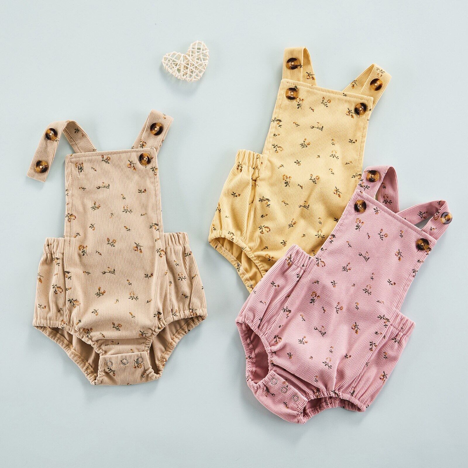 新作 Ma&Baby0-24MフラワーボーンインファントベイビーガールズロンパースノースリーブジャンプスーツオーバーオールコーデュロイベイビーsD84
