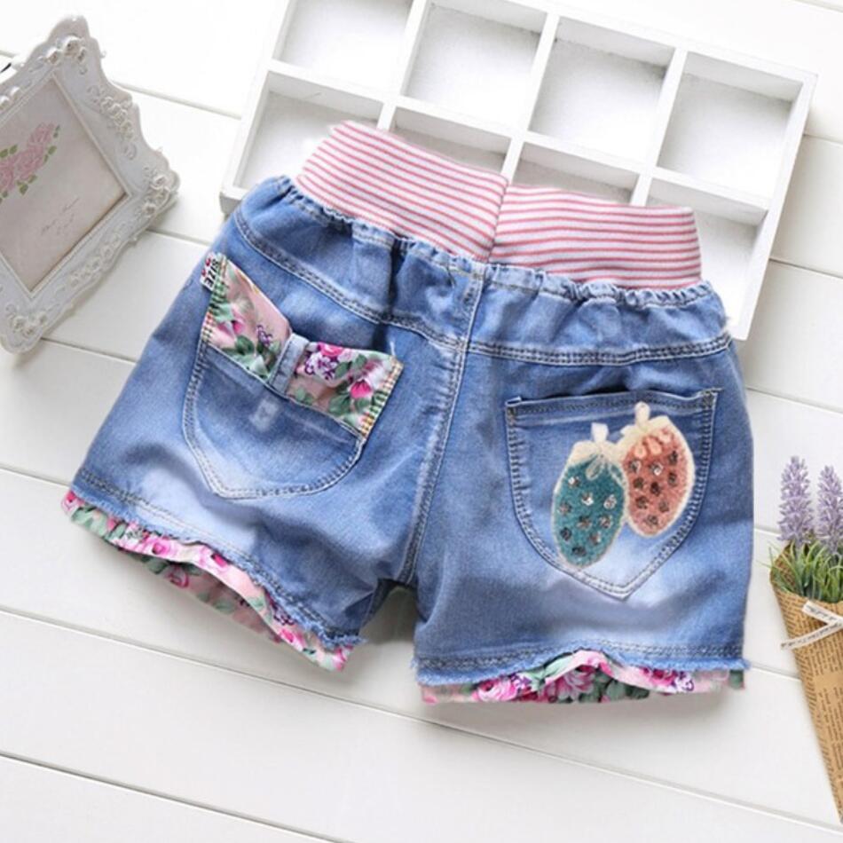 新作 ベビーガールズショーツジーンズレースフローラルサマーパンツコットンチルドレンキッズデニムショーツ幼児ガール
