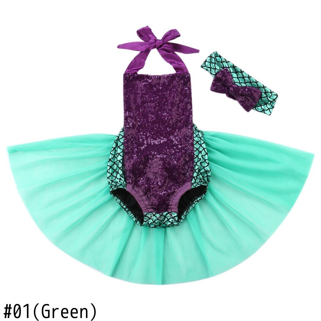 新作 2PCS生まれのベイビーガールマーメイドロンパースチュールドレスロンパースジャンプスーツ衣装0-24M
