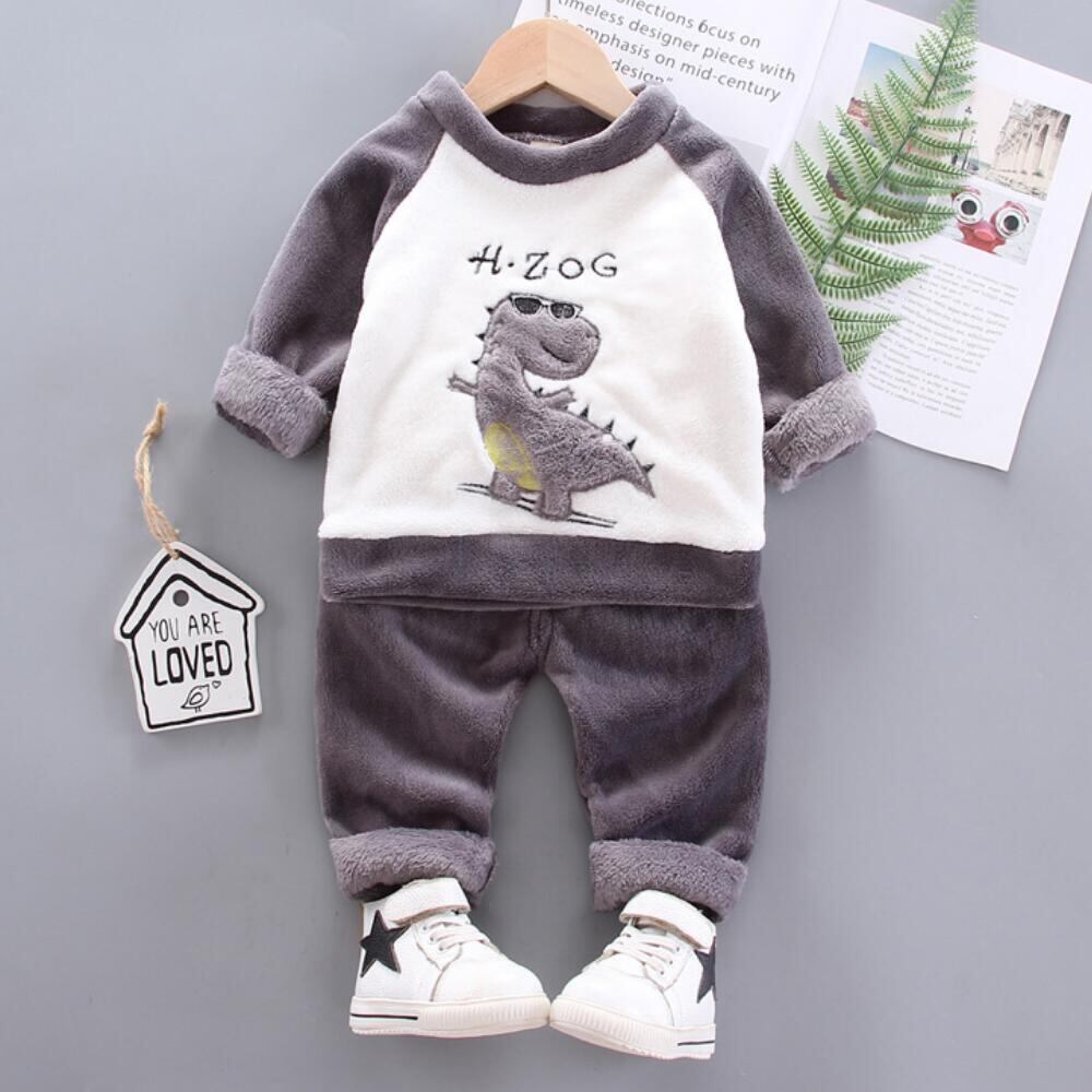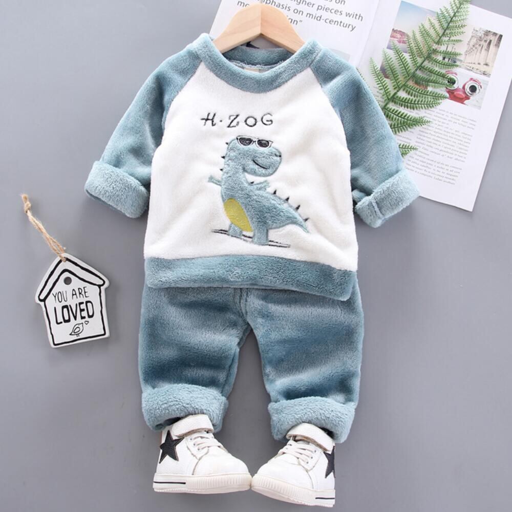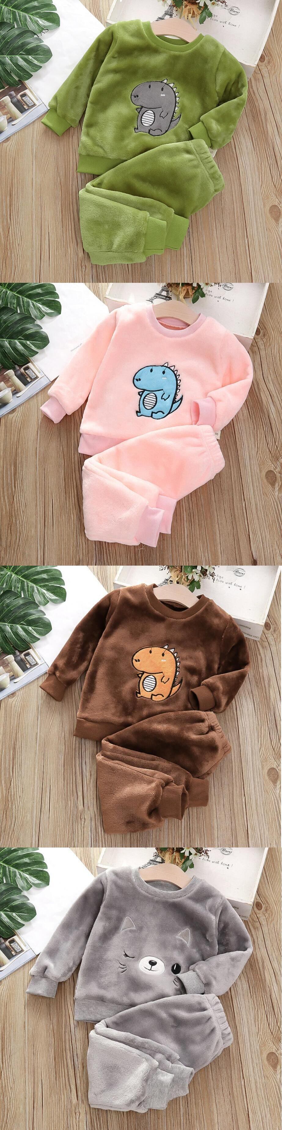 新作 子供服男の子パジャマPjsキッズ冬セットフランネル厚手の長袖スーツベルベット男の子ベビーホームウェア
