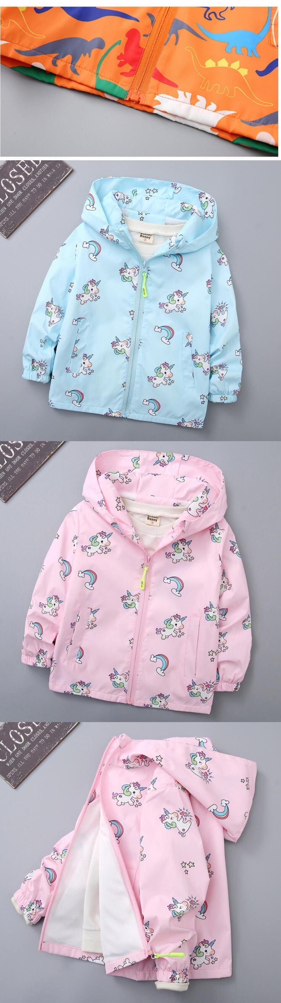 新作 キッズボーイズガールズジャケット春秋子供フード付きジッパーウインドブレーカー幼児ベビープリントコート防水ボーイ