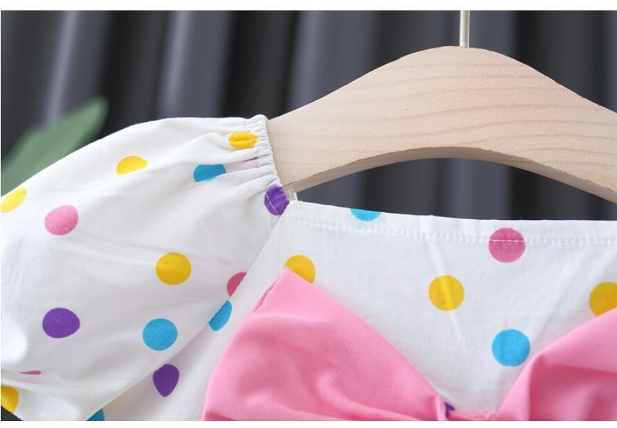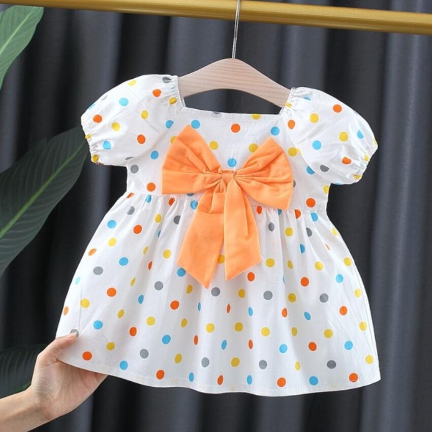 新作 春夏用 小さな女の赤ちゃん用の服 プリントドット ボウドレス 0-2歳 かわいい誕生日の幼児のドレス