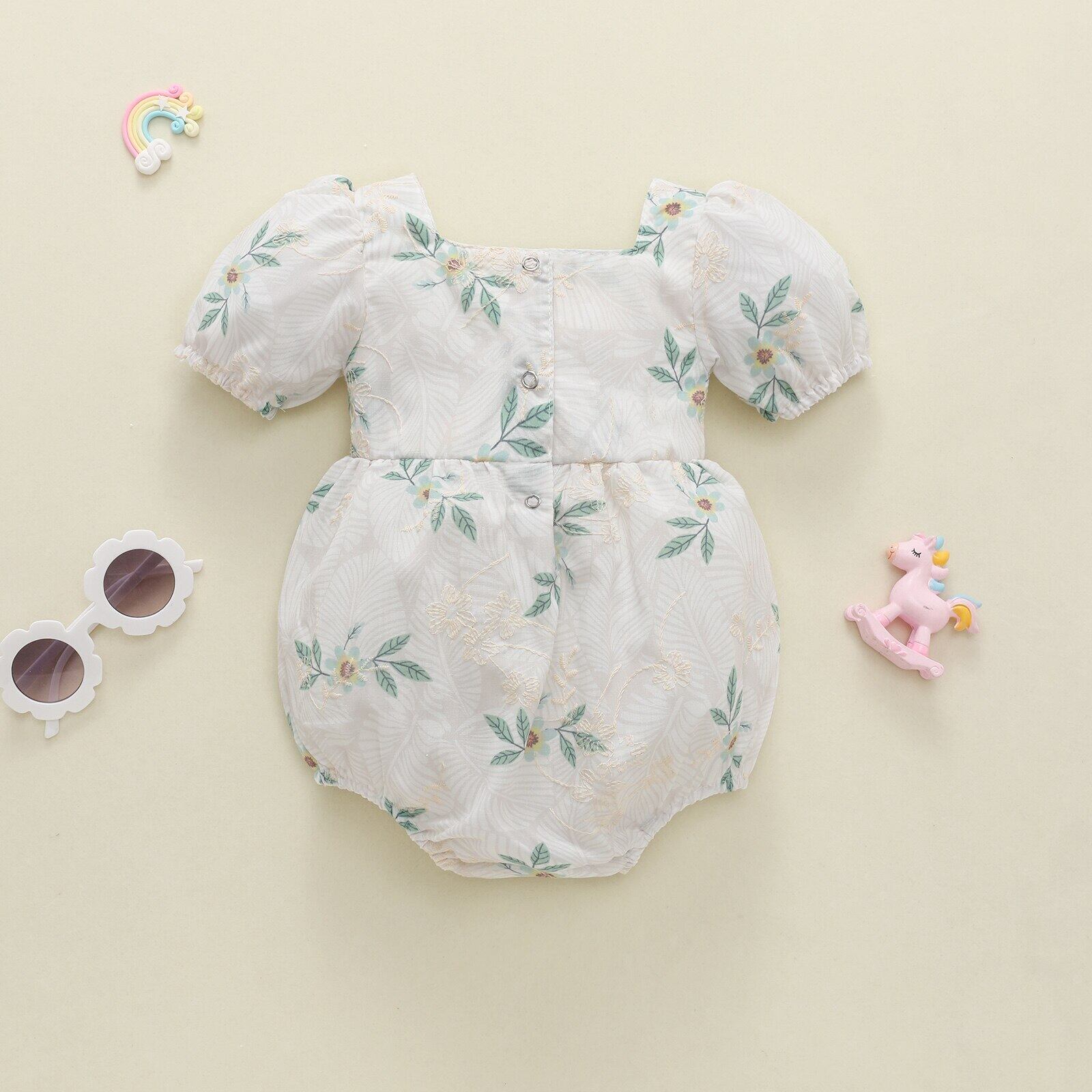 新作 Ma&Baby0-24MフラワーボーンインファントベイビーガールズロンパースサマーパフスリーブフローラルジャンプスーツsD11
