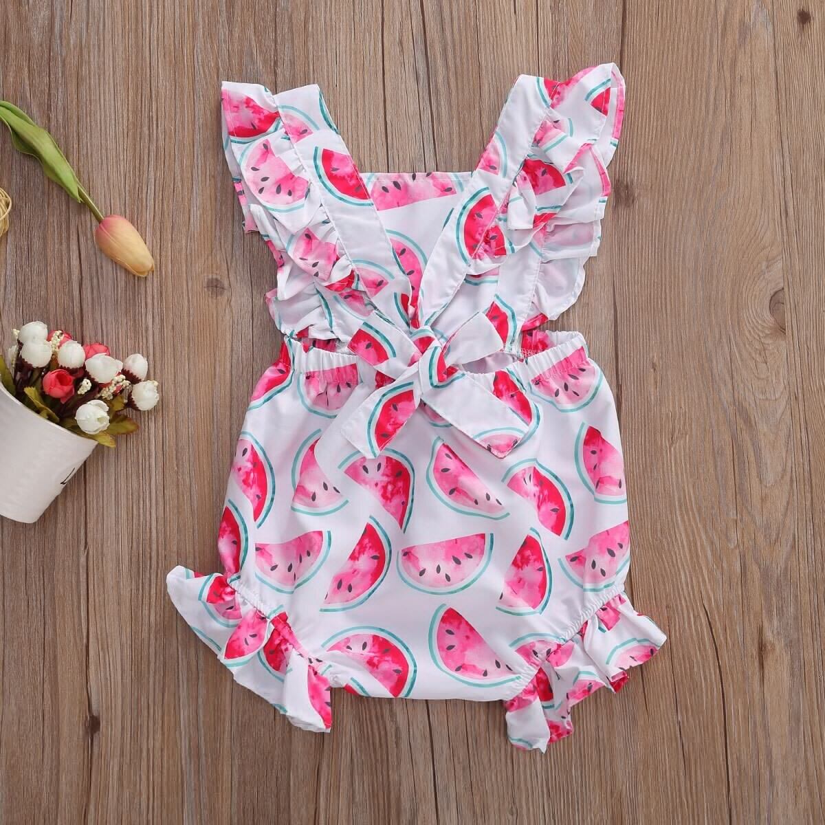 新作 3-18M生まれの幼児の女の赤ちゃんスイカロンパースフリルジャンプスーツプレイスーツ夏のノースリーブの女の赤ちゃんの服s