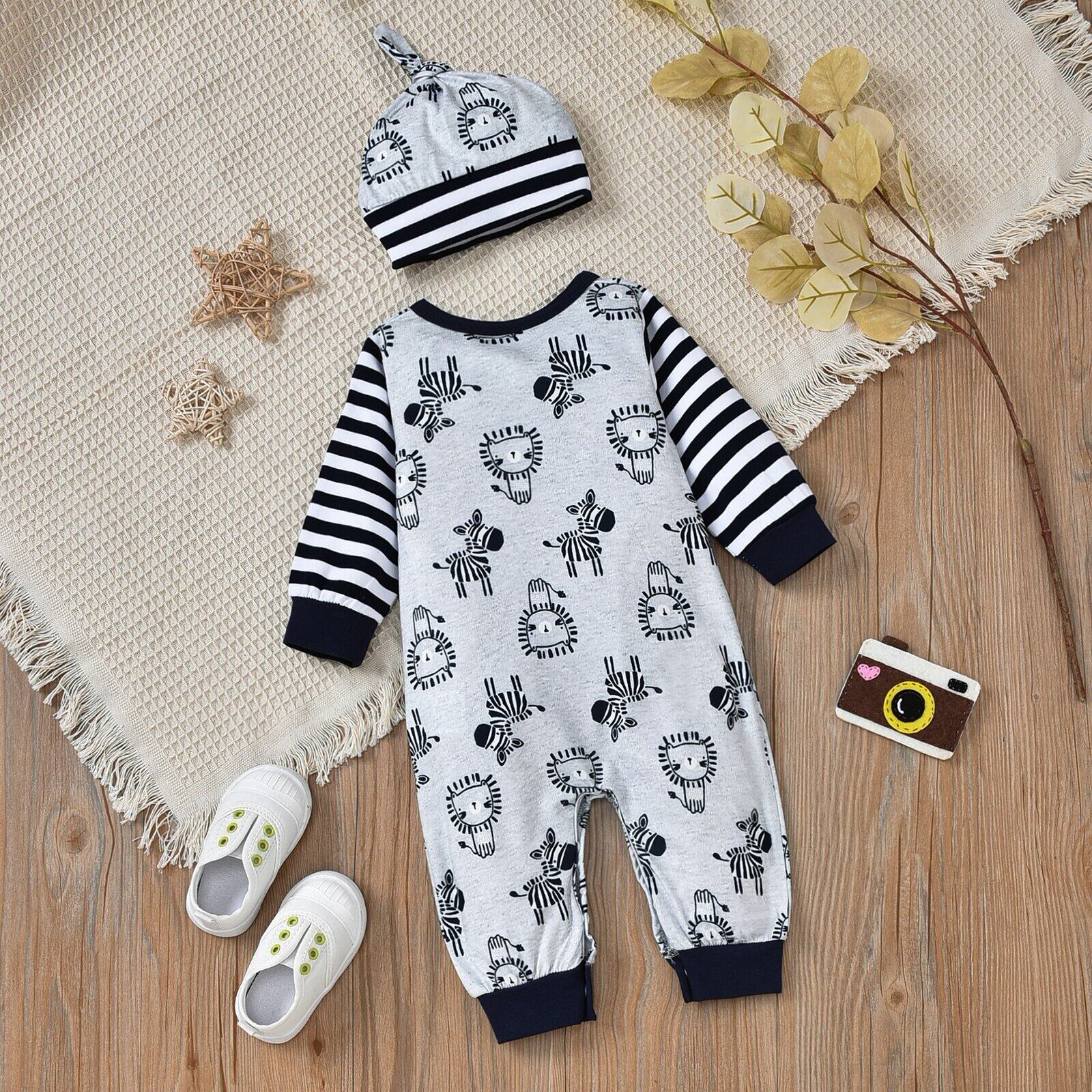 新作 Ma&Baby0-18M生まれの幼児男の子漫画ジャンプスーツ長袖ロンパース帽子秋の春の衣装s