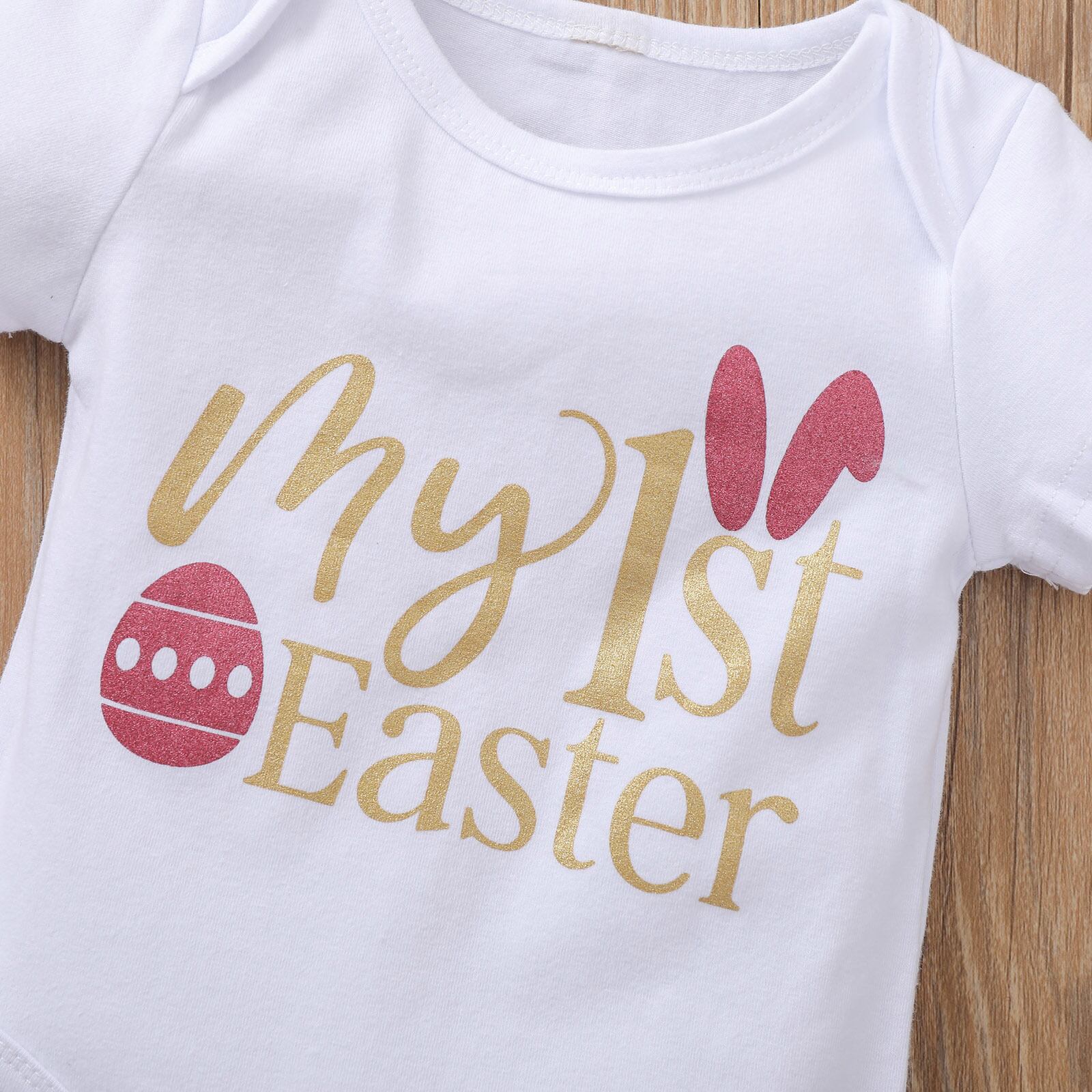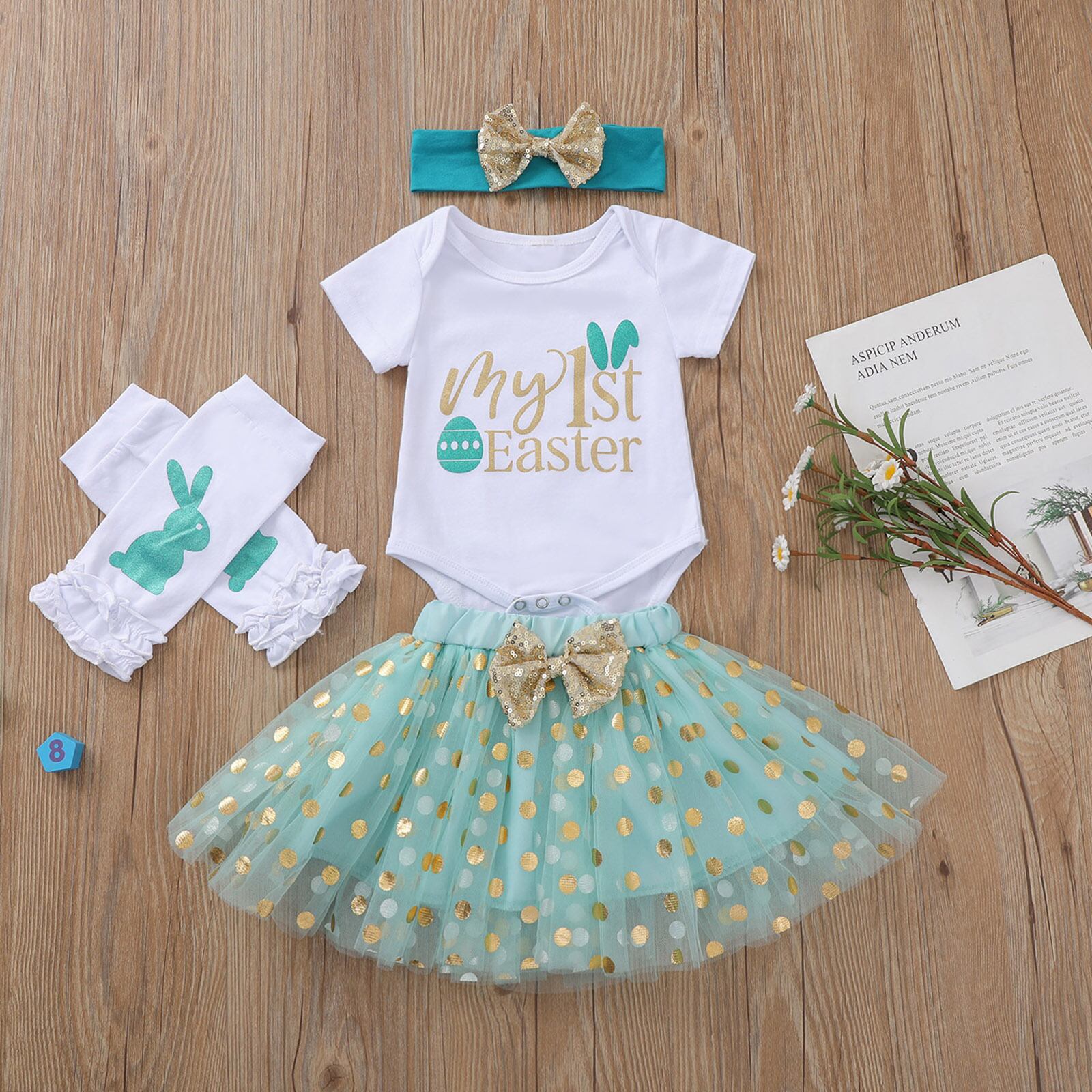 新作 生まれた赤ちゃんの女の子イースター4ピース衣装セット半袖ロンパース+チュチュスカート+カチューシャ+レッグウォーマーセット