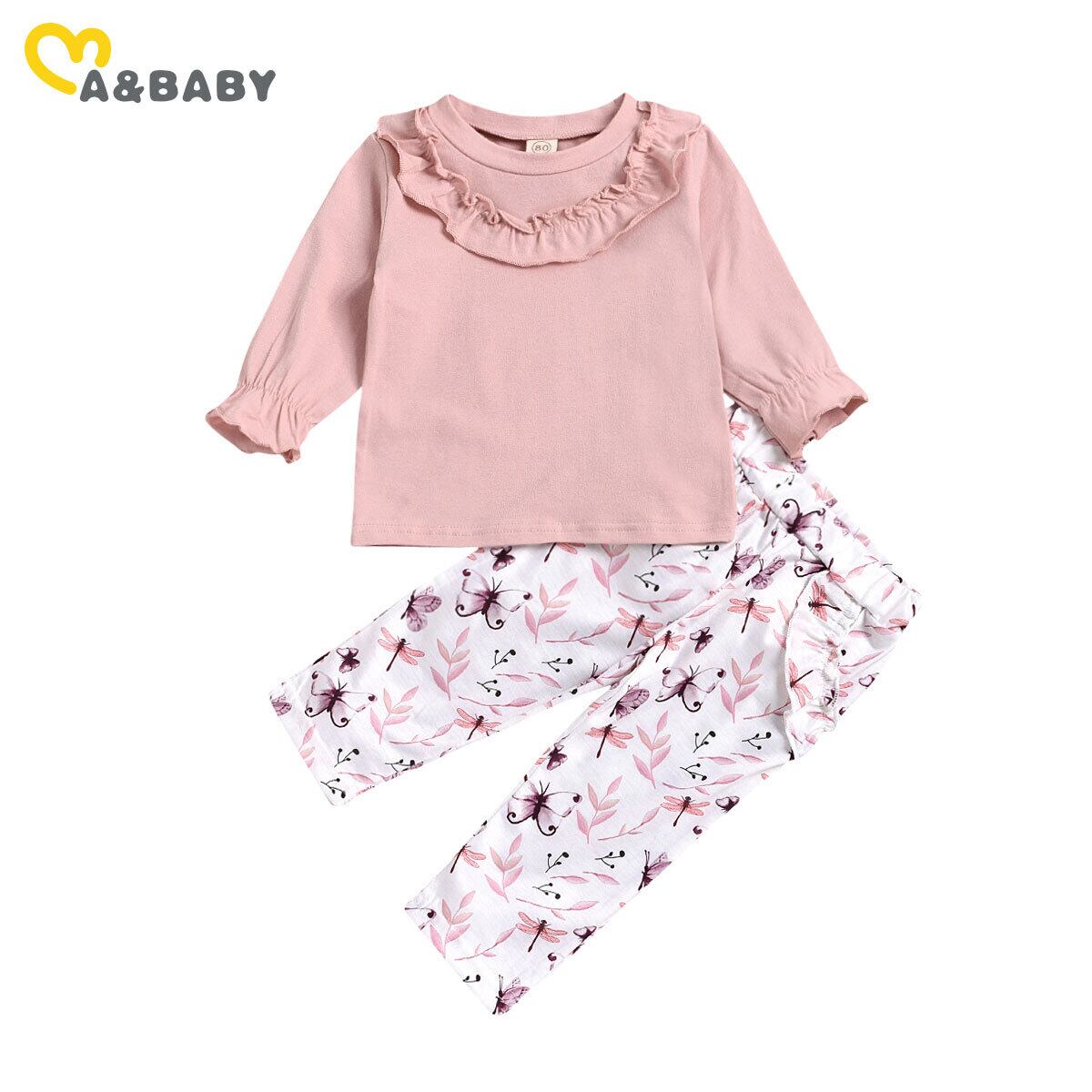 新作 Ma&Baby1-6Y秋春フラワー幼児キッドガール服セットソフト長袖トップスフリルフローラルパンツ衣装子供