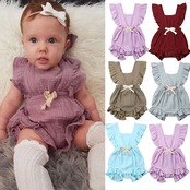 新作 生まれた幼児の女の赤ちゃんフライスリーブロンパースソリッドコットン夏服衣装ジャンプスーツサンスーツ0-24M
