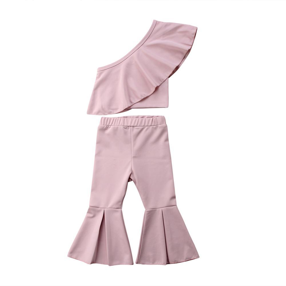 新作 ベビーキッズガールフリルトップロンパースジャンプスーツベルロングパンツ2pcsサマーベイビーガール洋服セット