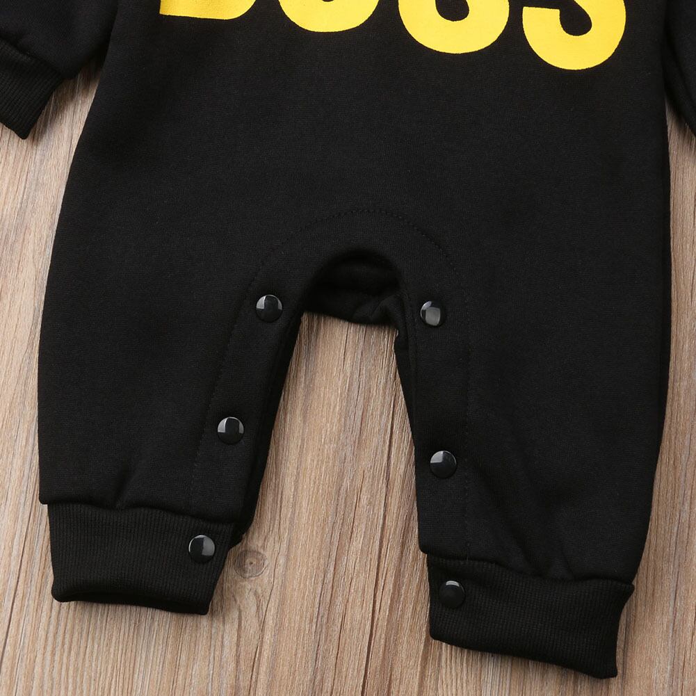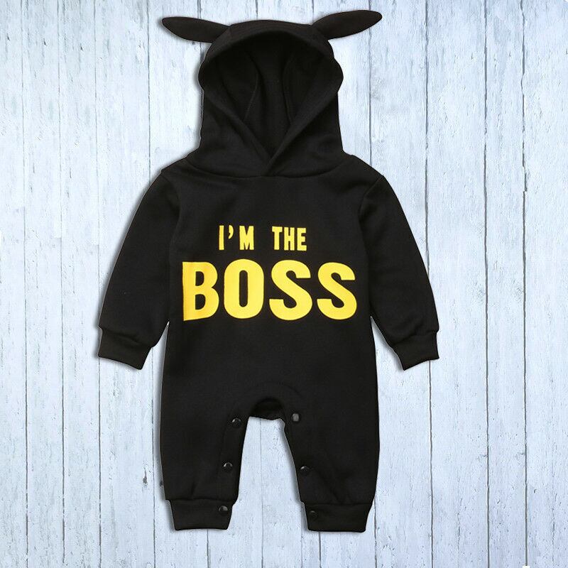 新作 生まれた幼児の男の子の女の子冬の暖かい長袖の手紙プリントロンパースジャンプスーツフード付きの服服0-18M