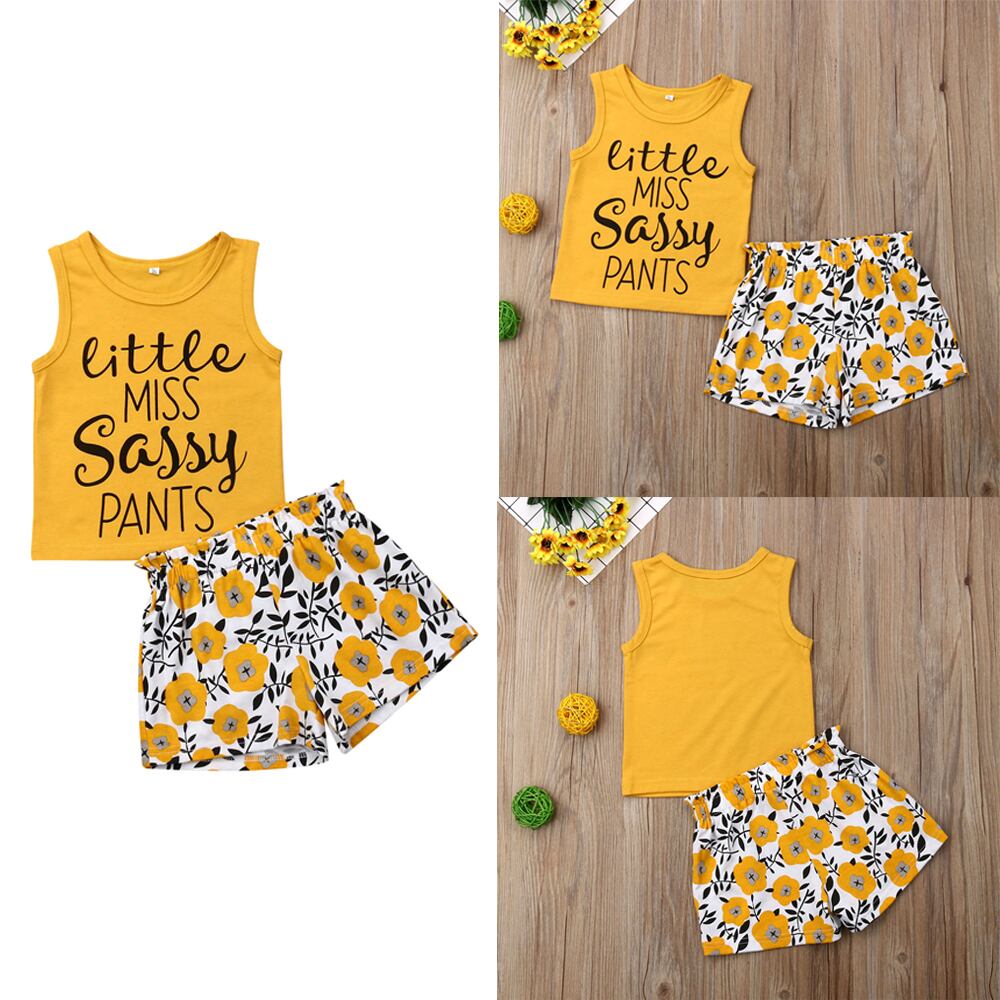 新作 夏の女の赤ちゃんビーチノースリーブトップスベストTシャツ+パンツ衣装セット服