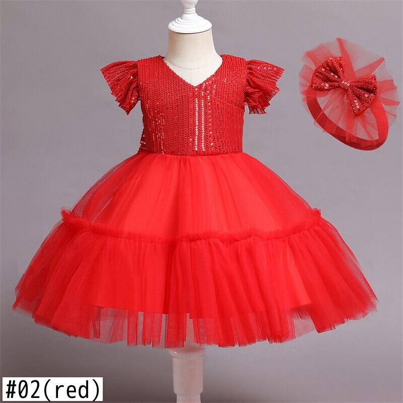 新作 フラワーチュールドレスガールズスパンコールボウノットヘッドバンドキッズバースデーパーティードレス幼児ウェディングブライドメイド