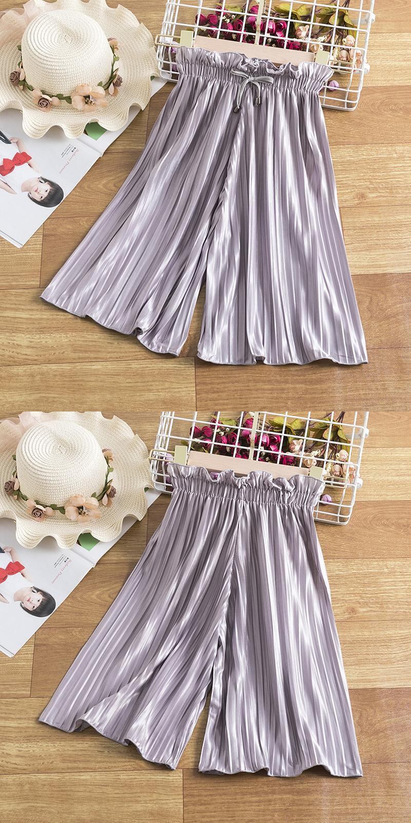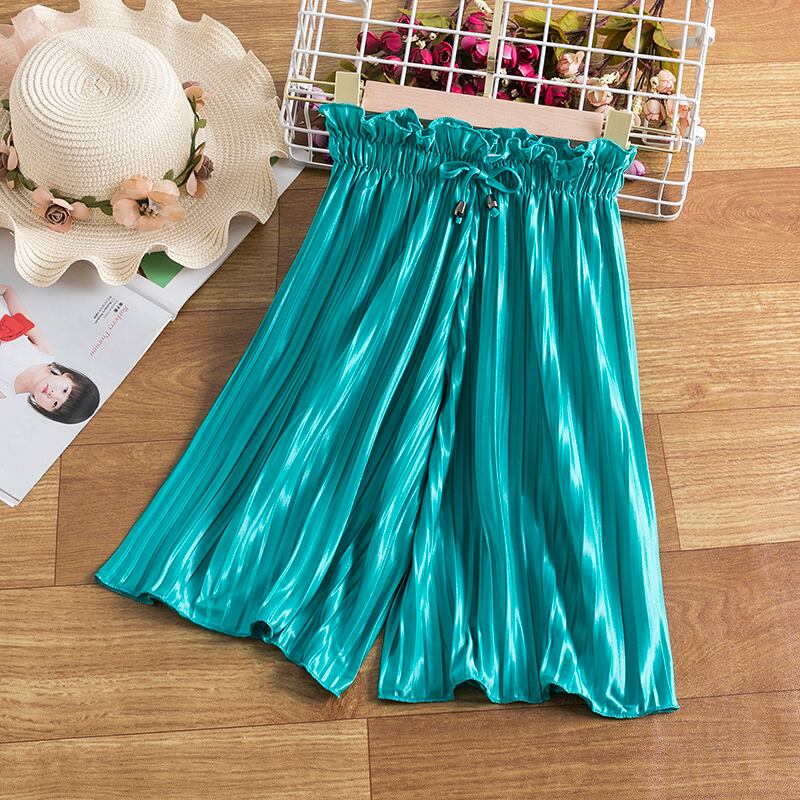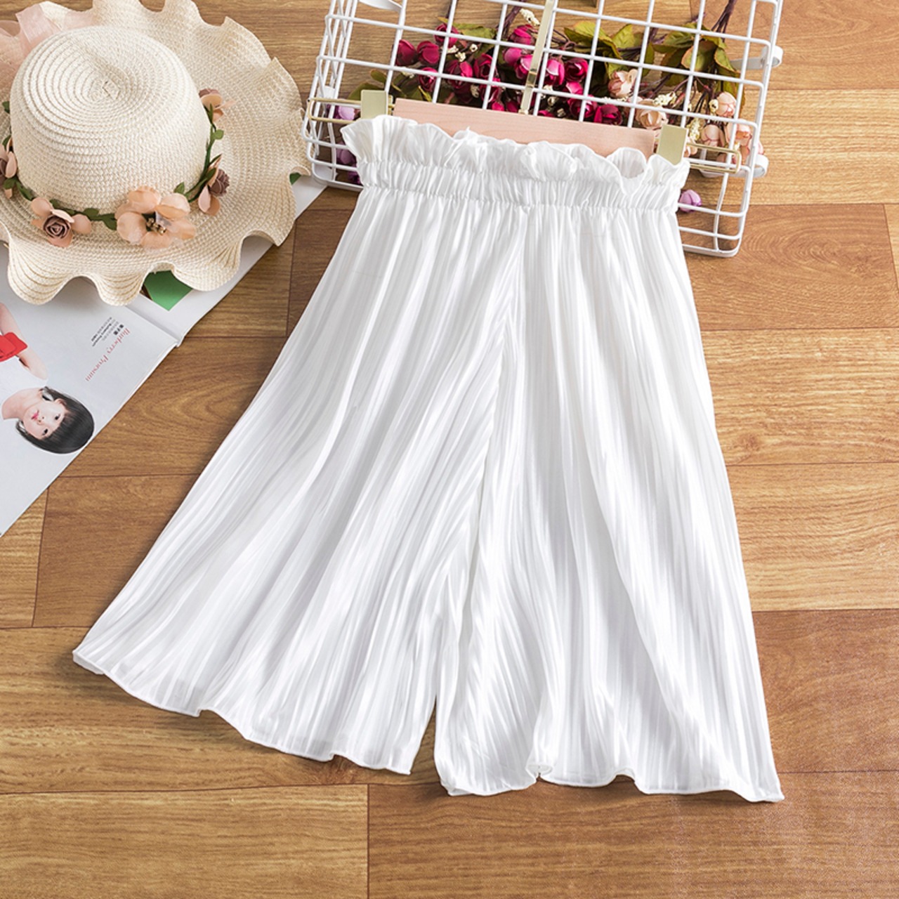 新作 キッズサマーパンツガールズシフォン通気性ワイドレッグクロップドパンツ子供ルーズプリーツパンツ無地レギンス3-10Y