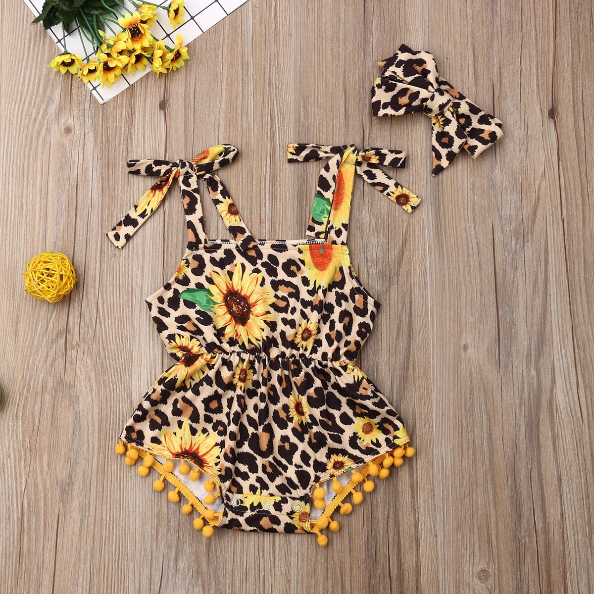 新作 幼児生まれの女の赤ちゃんロンパースひまわりポンポンジャンプスーツプレイスーツ夏の花の服女の赤ちゃん