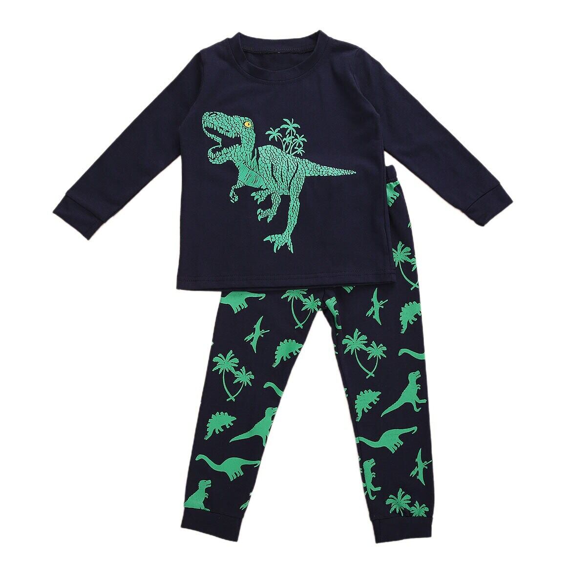 新作 リトルボーイズ2PCSパジャマセット漫画恐竜パターン長袖ラウンドネックルーズトップスロングゴムバンドパンツ、パジャマセット