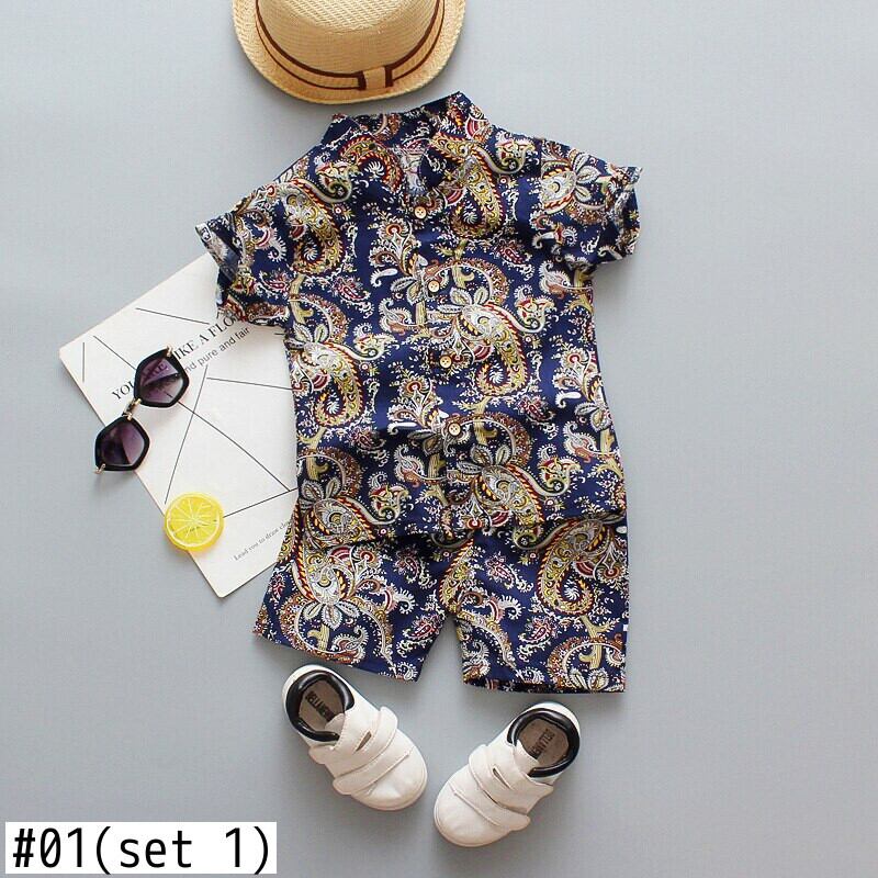 新作 ベビーボーイズサマーウェアセットフローラルボタンダウンゲンテルマンTシャツ+ショートパンツゲンテルマン幼児キッズビーチスポーツスーツトラックスーツ