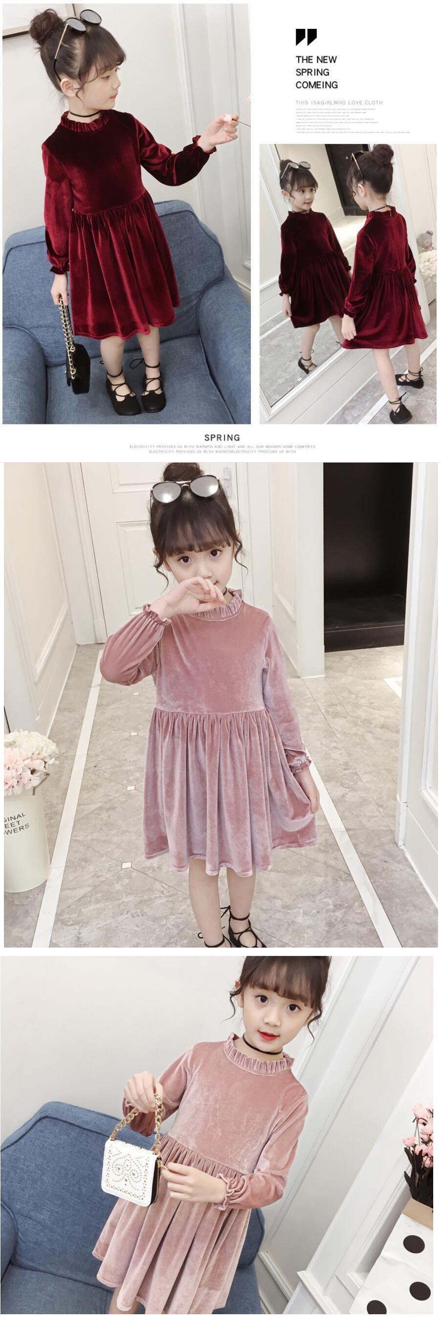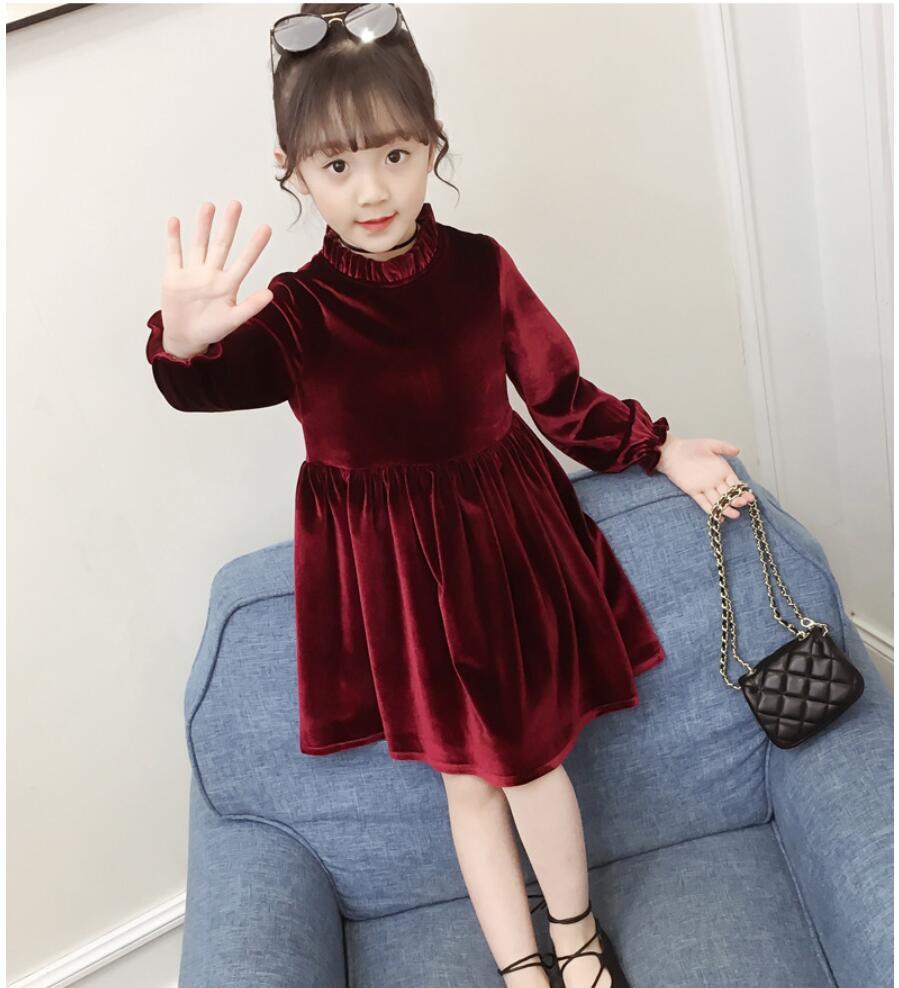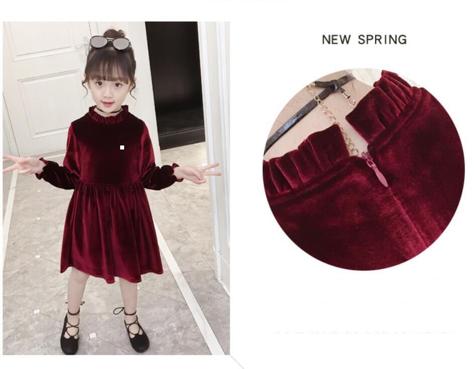 新作 女の子長袖ドレス学校の子供服10代の女の子ベルベットクリスマスパーティードレスドレス子供3-12歳