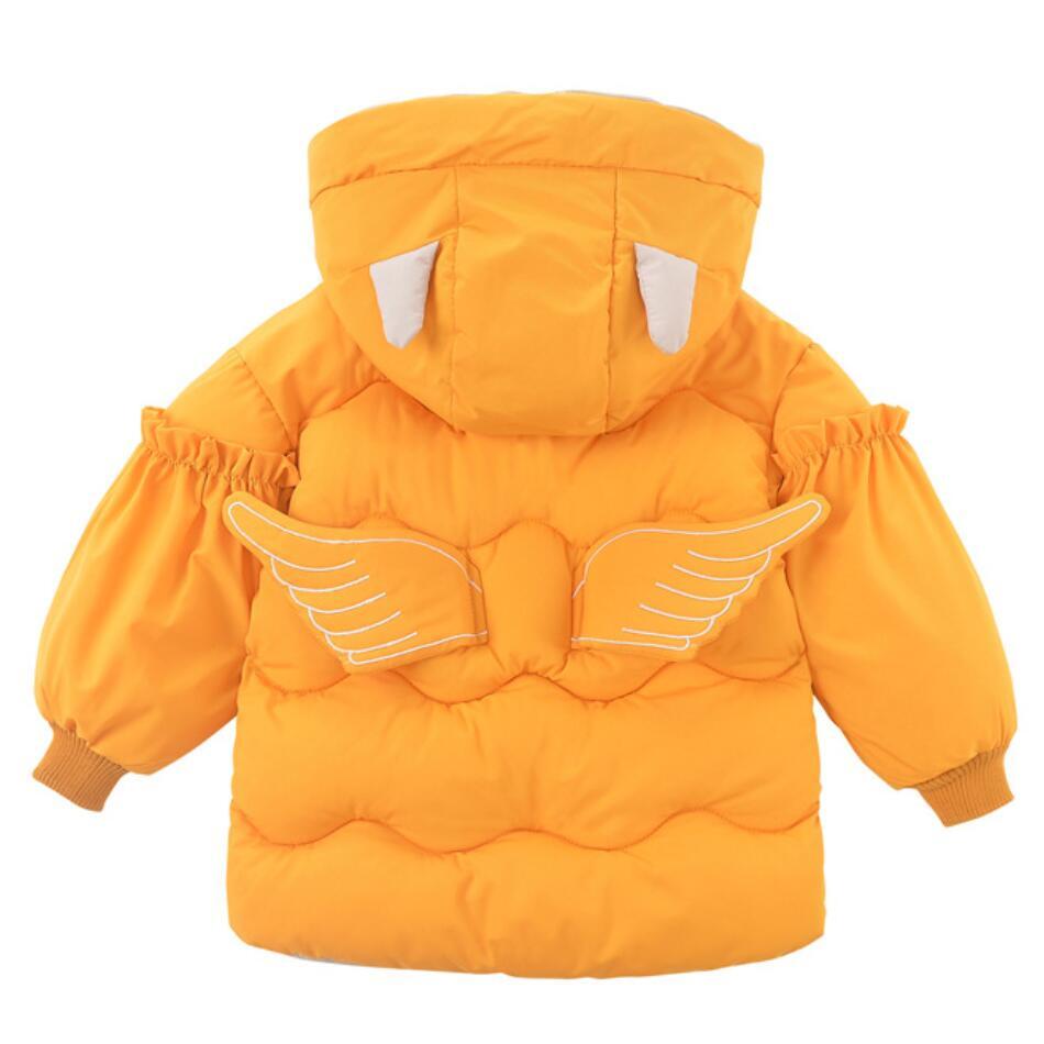 新作 幼児の女の子は翼のある暖かい冬のコートを厚くするコート子供フード付きジャケット子供アウターウェア23 4 56年