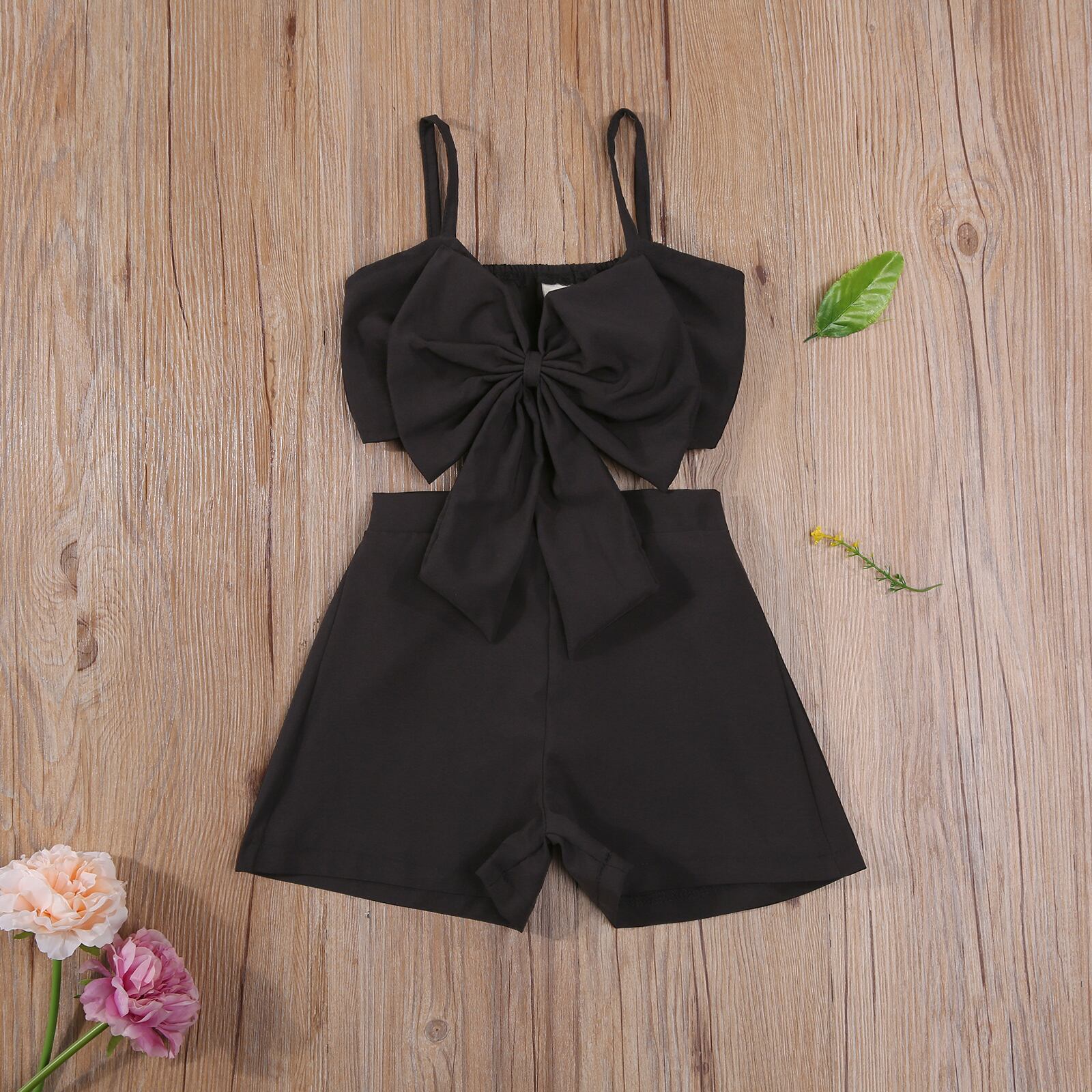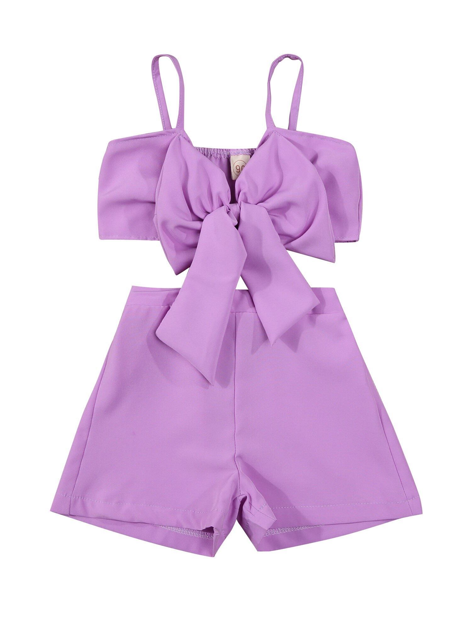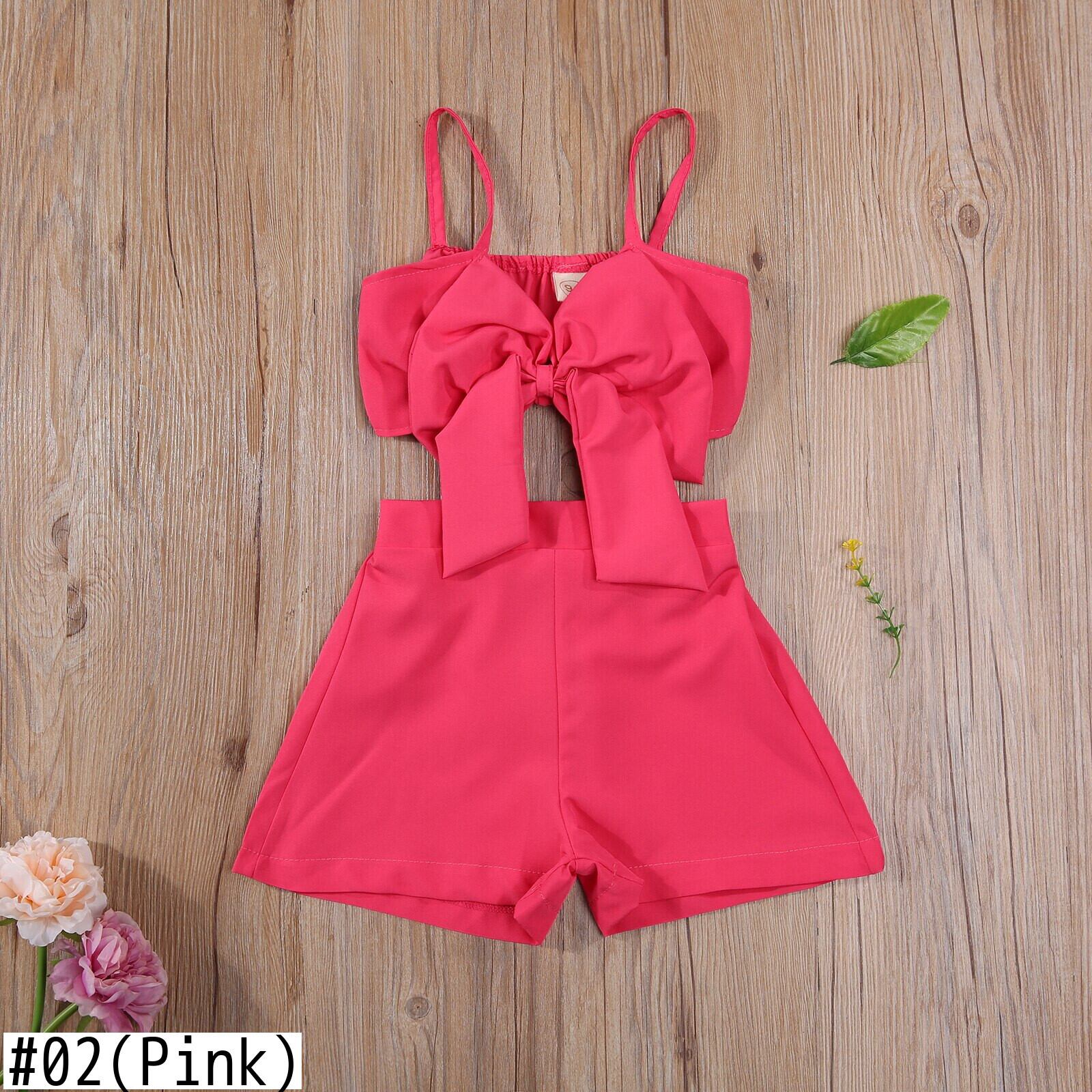新作 Ma&Baby2-7Y夏の子供子供服セットボウクロップトップベストショーツビーチホリデーバケーション衣装