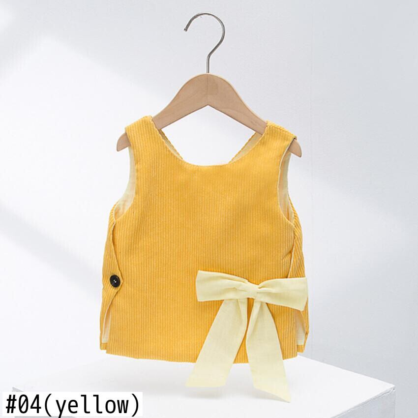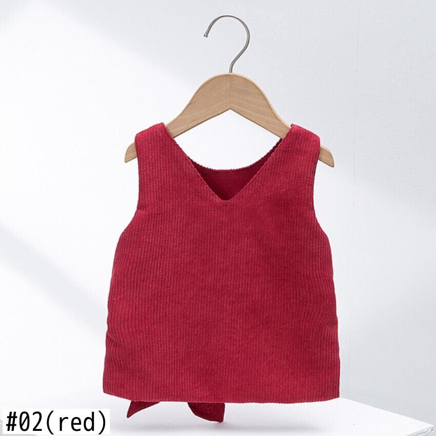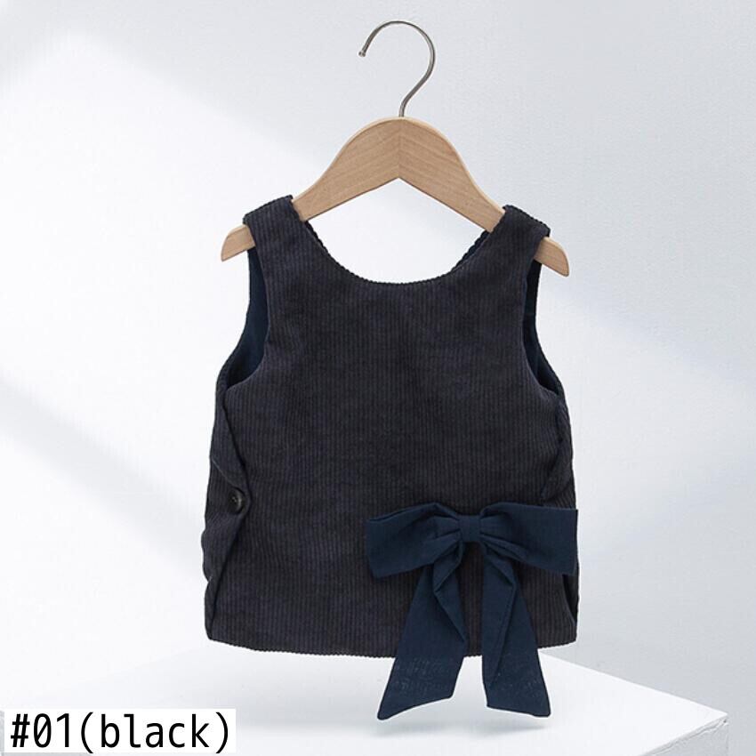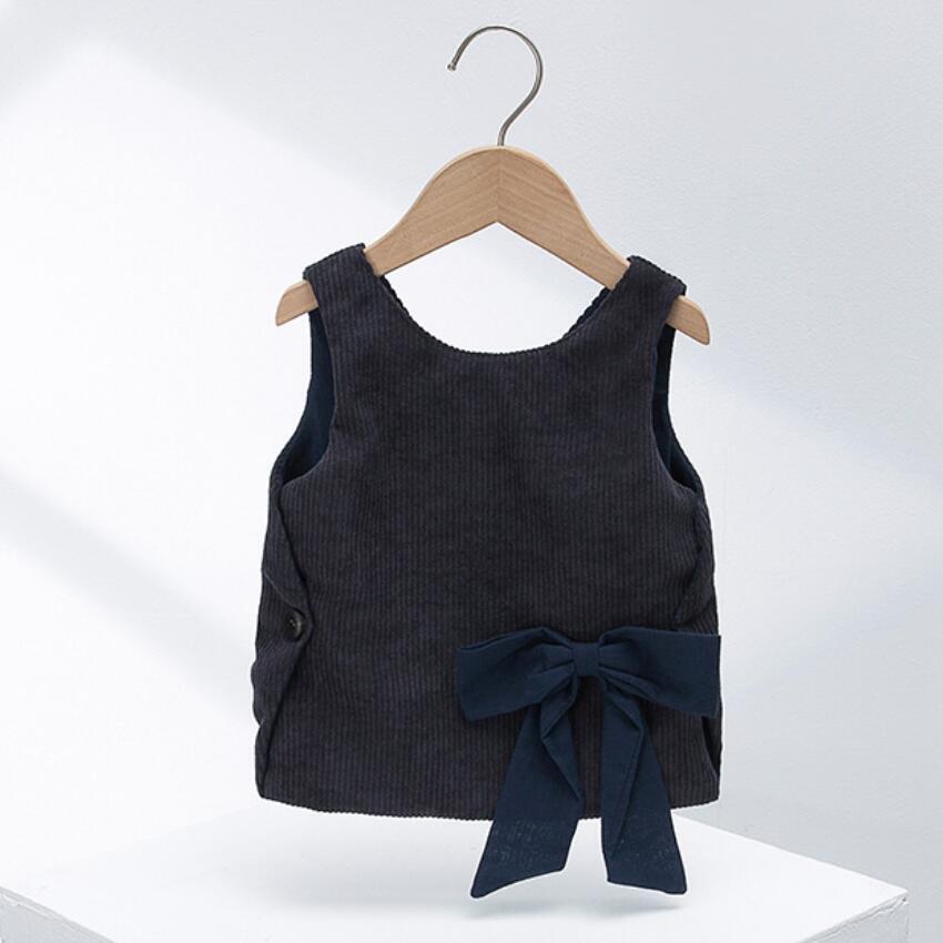 新作 ガールコットンベストサウスチョッキコーデュロイビッグボウノットセーターガールズドレス秋冬子供