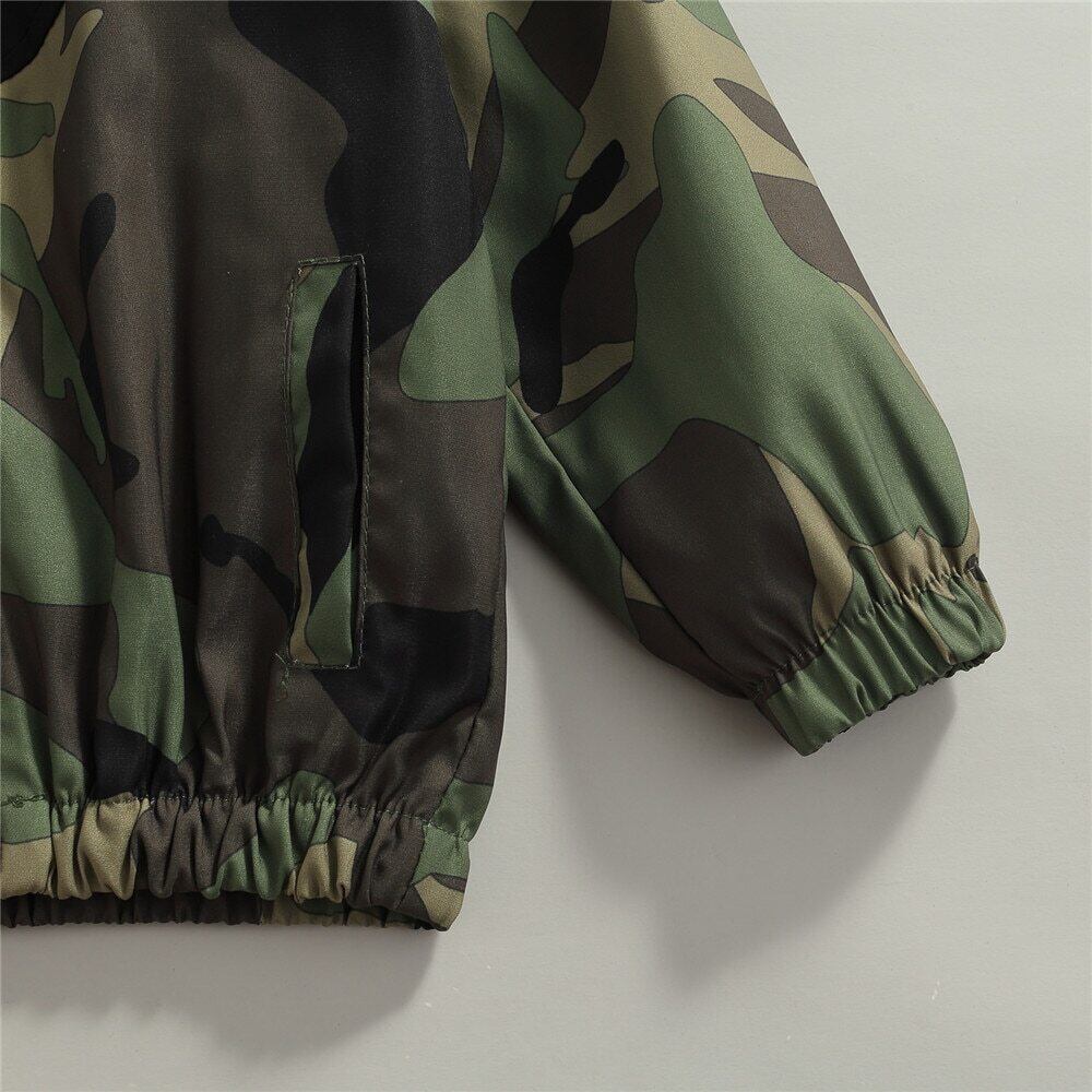 新作 子供迷彩フード付きコートボーイズ長袖伸縮性裾ジッパージャケットポケット付き秋冬キッド