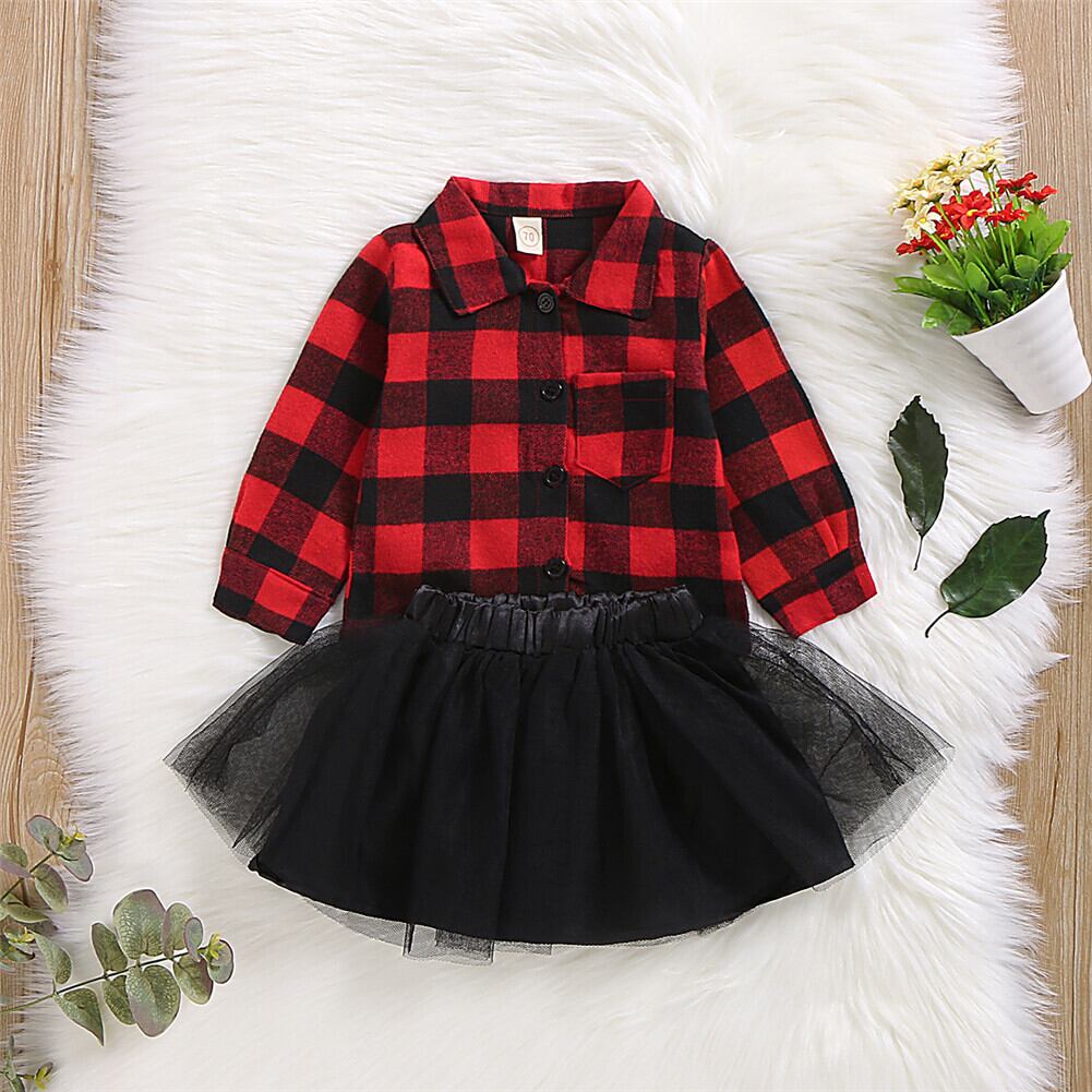 新作 3M-4Yクリスマス生まれの幼児の赤ちゃんの子供の女の子の服セット赤い格子縞の鹿のシャツ黒のチュチュスカートクリスマスの衣装