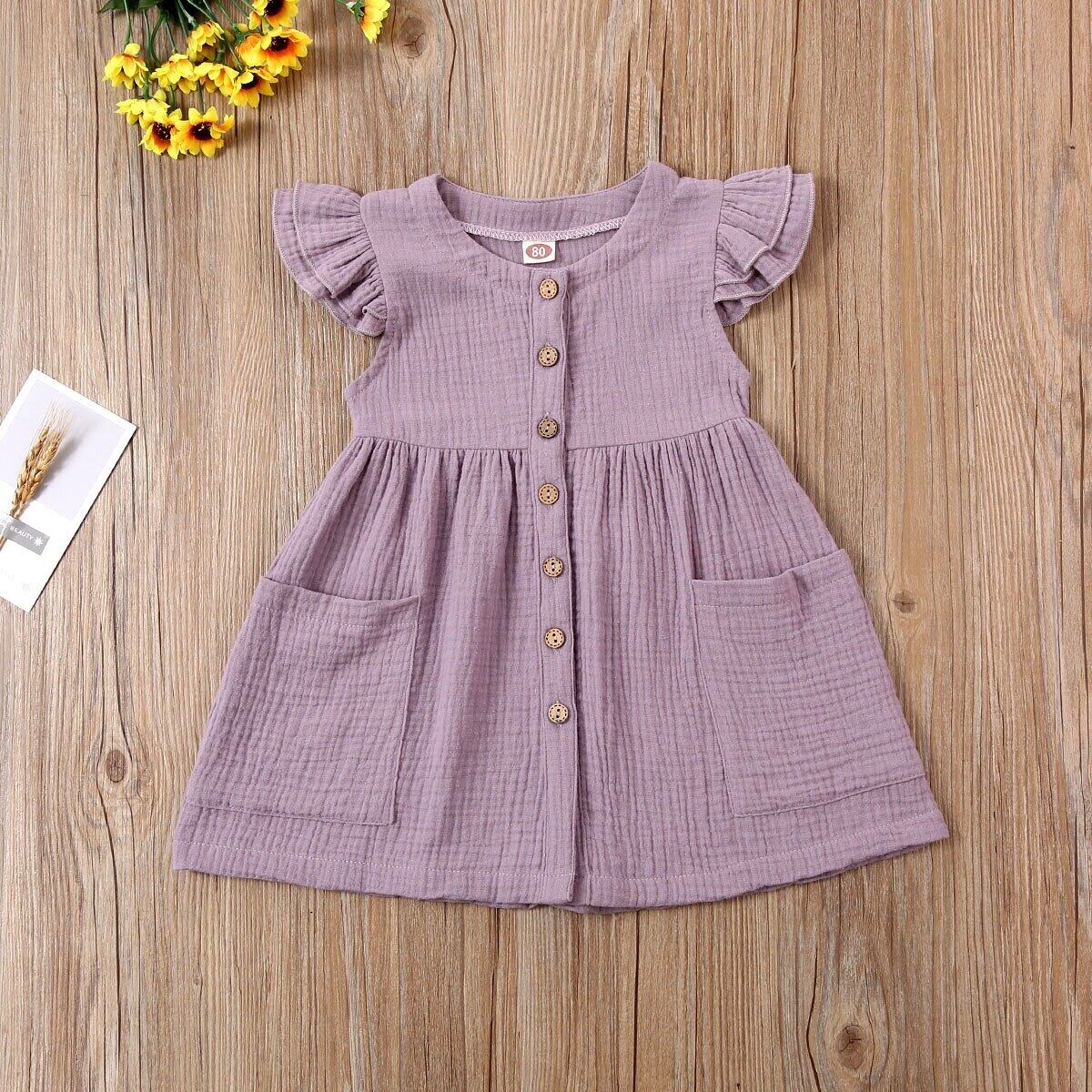 新作 Ma&Baby1-6Yサマー幼児キッドベビーガールドレスフリルスリーブパーティードレス子供ガールズボタンポケットドレス