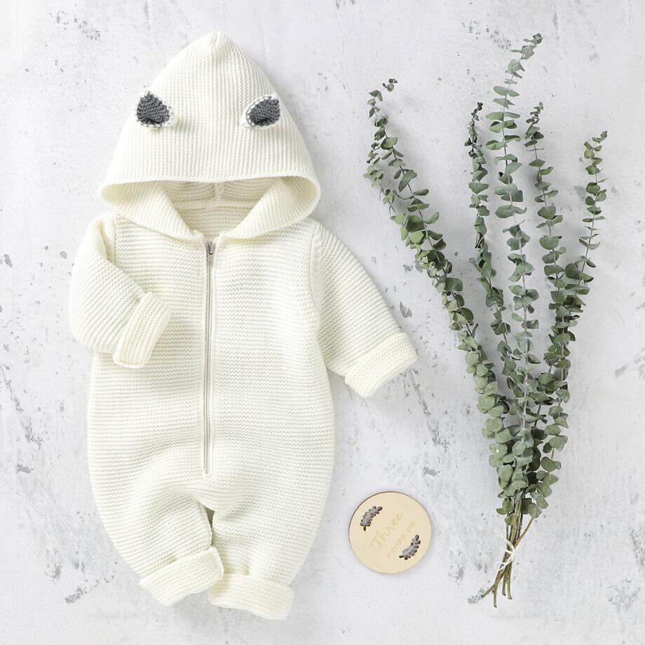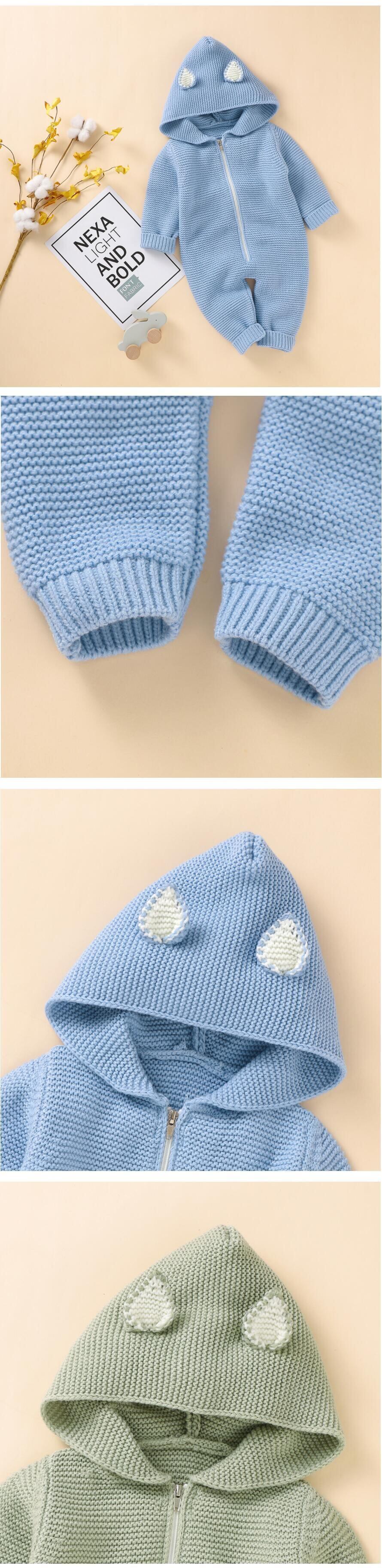 新作 ベビーボーイズウールロンパース生まれの服ボーイズガールズ幼児ニット暖かいフード付きジャンプスーツキッズニットロンパースかわいいオーバーオール