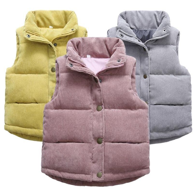 新作 2021年秋の女の子暖かいベスト冬の男の子厚くチョッキキッズアウターノースリーブコート子供ティーンコーデュロイジャケット