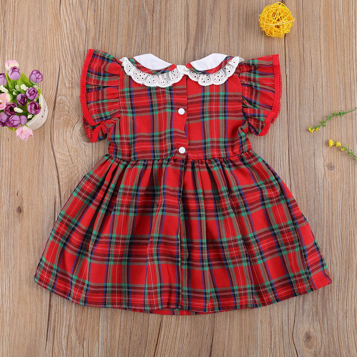 新作 Ma&Baby1-6Yクリスマス幼児ベビーキッドガールズチェック柄ドレスレースボウツツパーティードレスガールズクリスマスイヤーレッドドレス