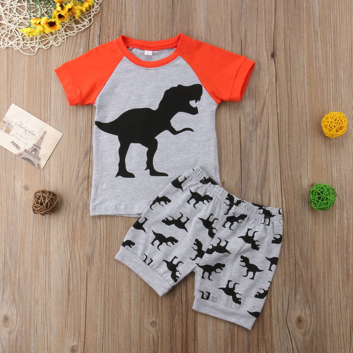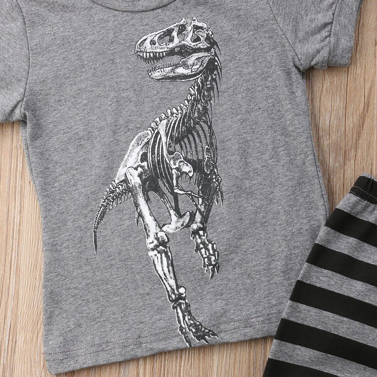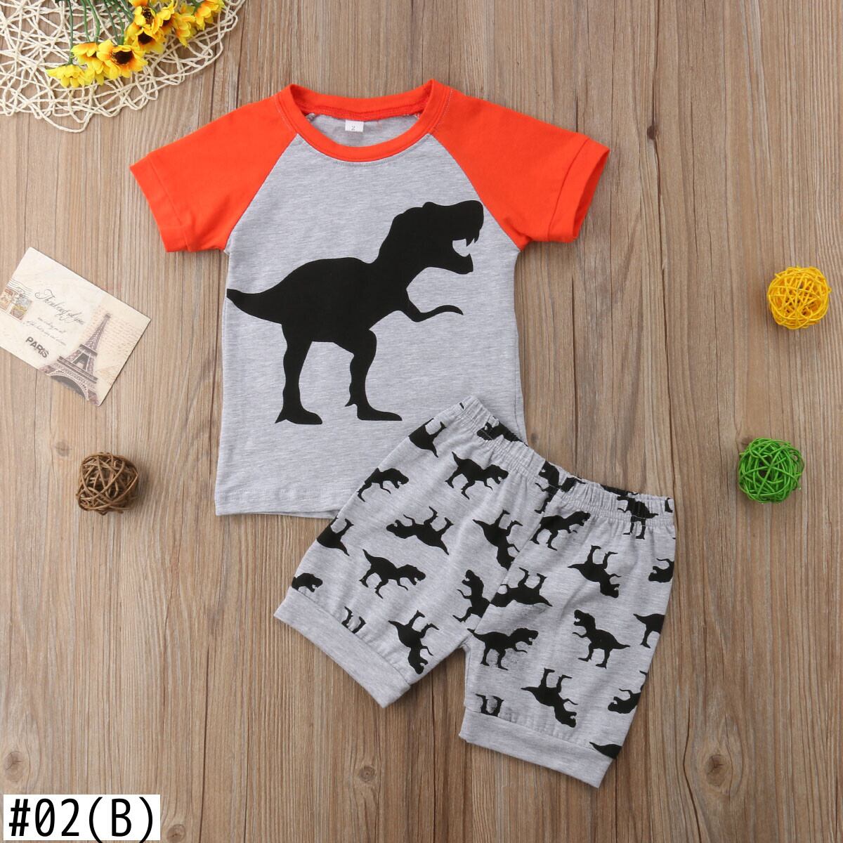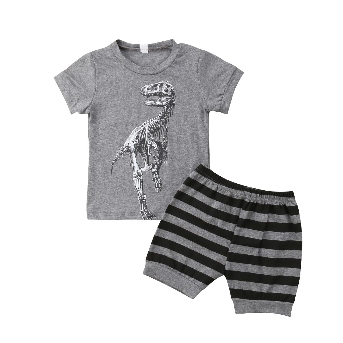 新作 幼児キッズベビーボーイ恐竜ストライプトップスTシャツショートパンツ衣装服