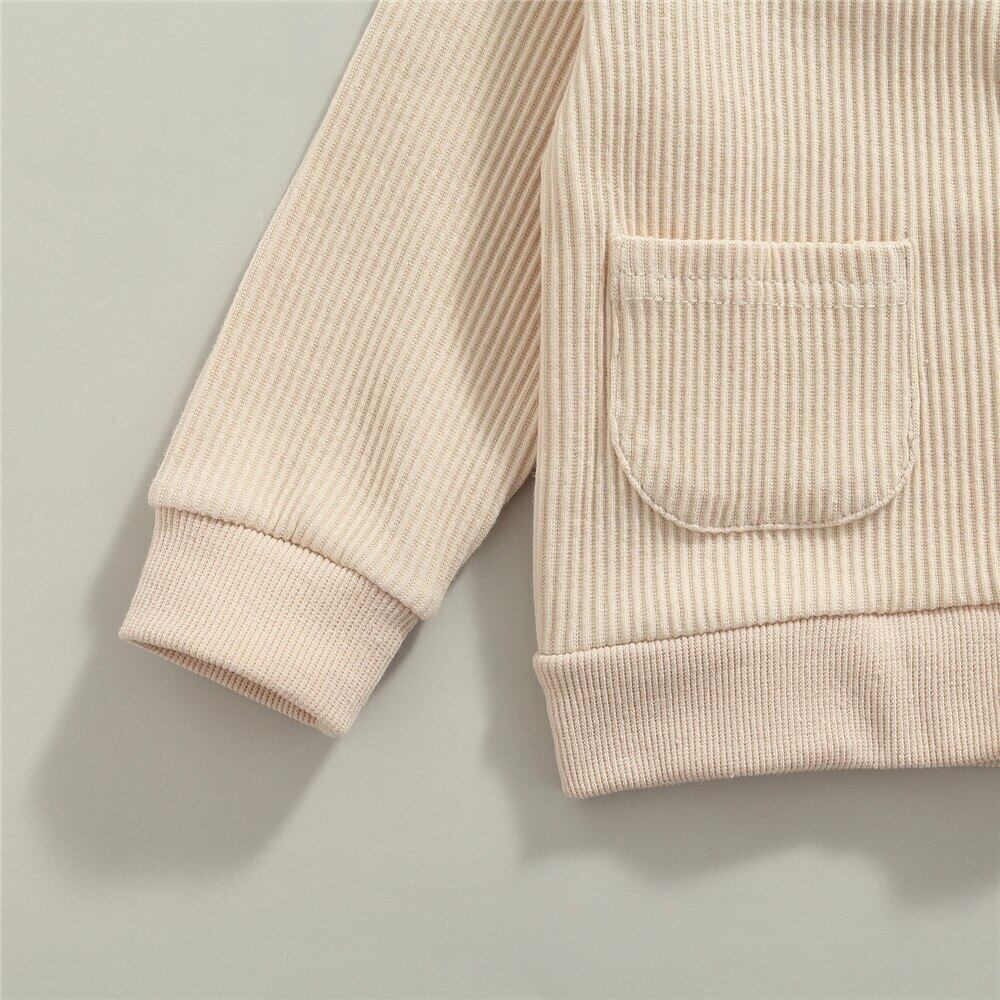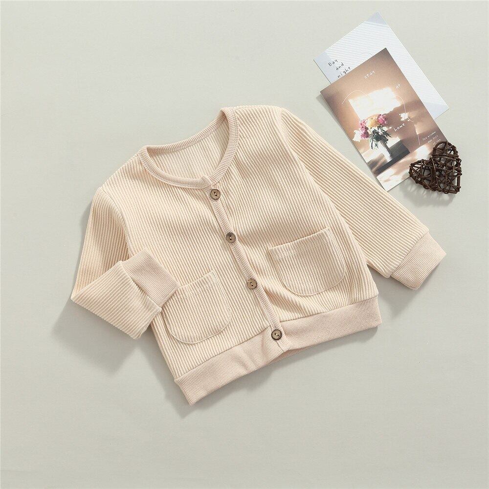 新作 ミニマリストスタイルの幼児キッズベビーニットカーディガンポケット付きシングルブレスト長袖秋の幼児男の子の女の子