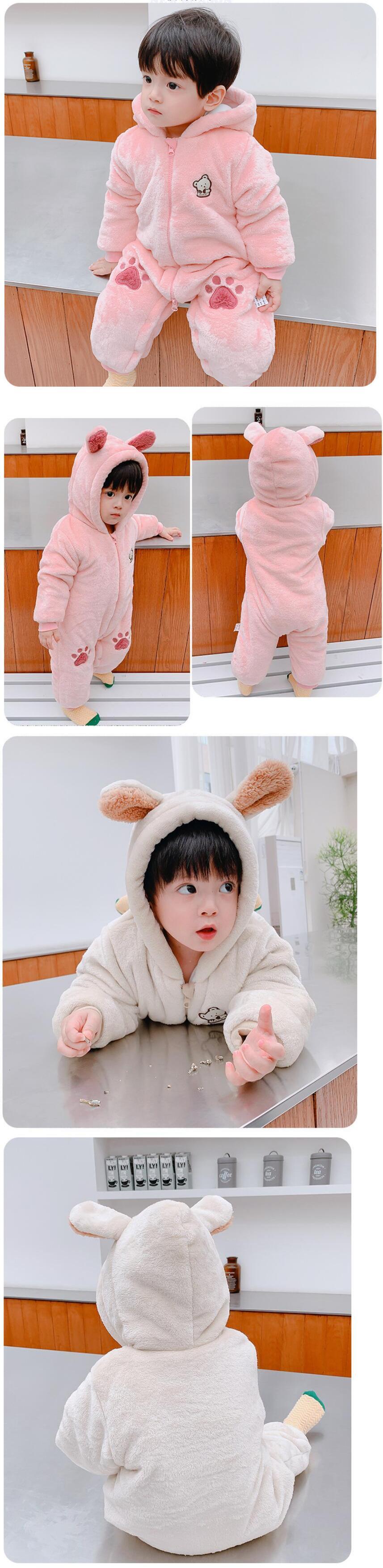 新作 2021秋生まれの男の子の赤ちゃんの子供たち暖かい厚いフランネルフード付きジャンプスーツの服超かわいい幼児の男の子の女の子冬の綿のロンパース