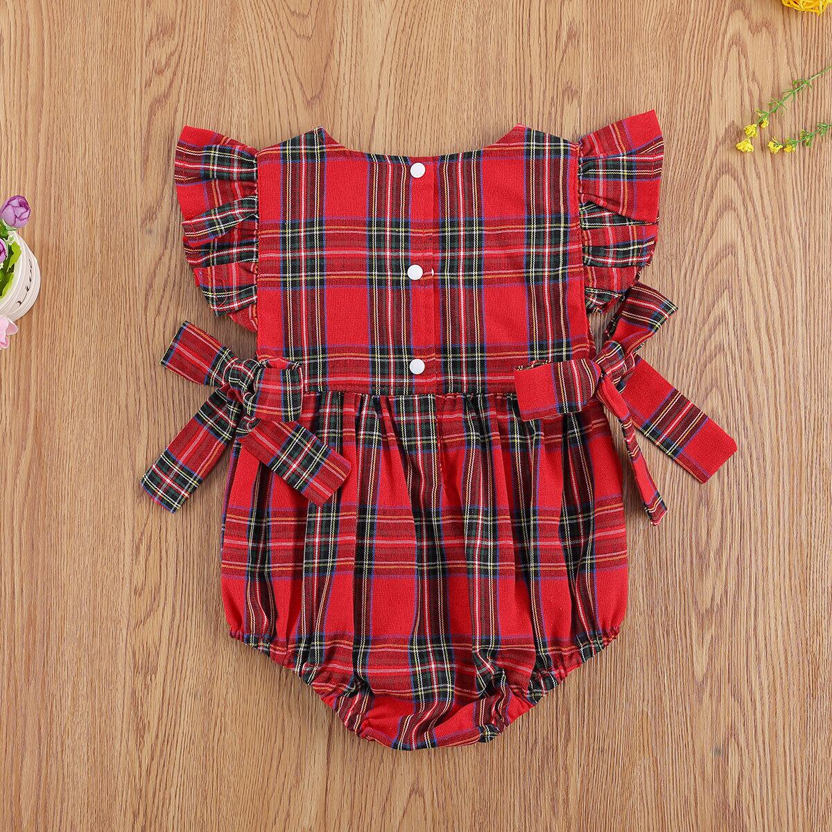 新作 Ma&Baby0-24Mクリスマスベイビーガールズロンパース生まれの幼児ベビーレッドチェック柄ボウジャンプスーツノースリーブクリスマス服