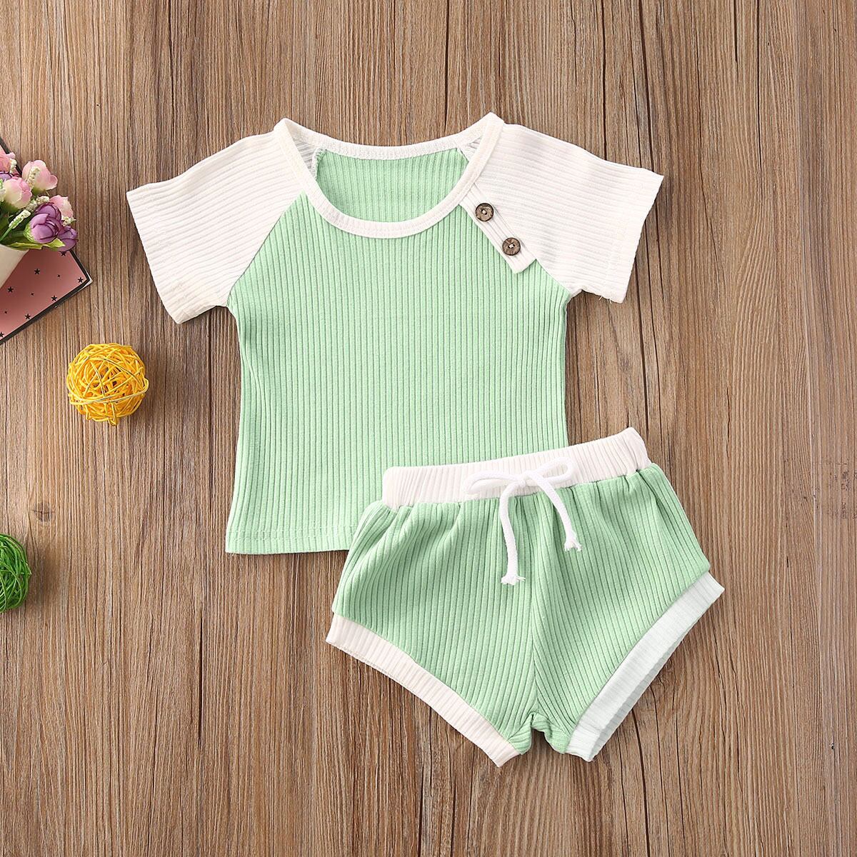 新作 幼児ベビーボーイズガールズサマーウェアボーンキッズベビーガールズリブニット半袖Tシャツ+ショーツトラックスーツセット
