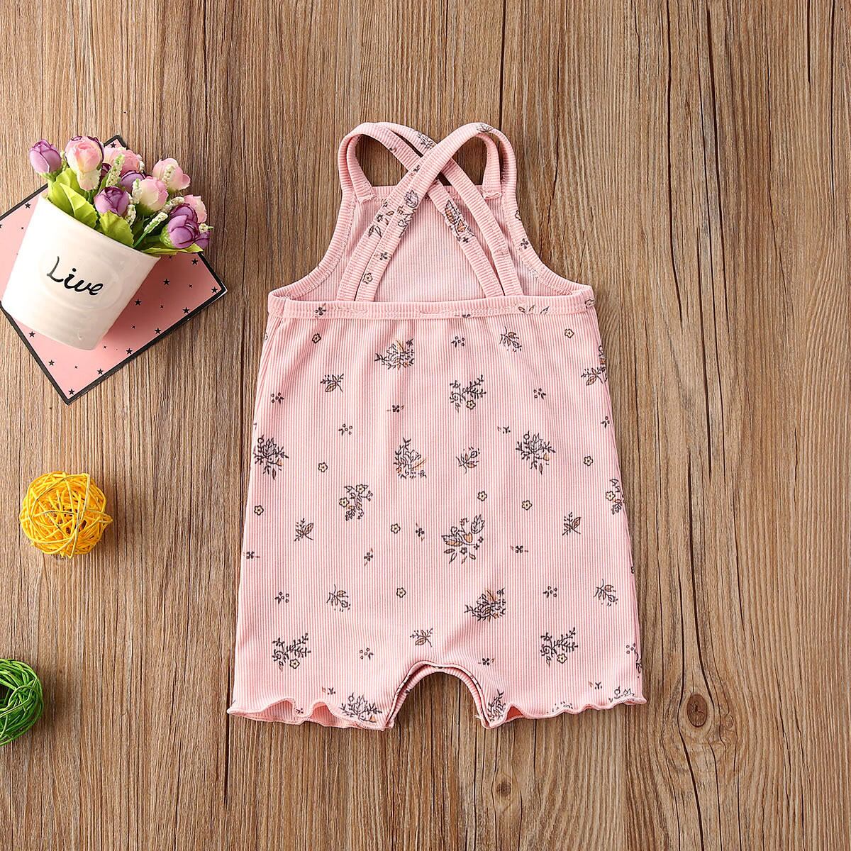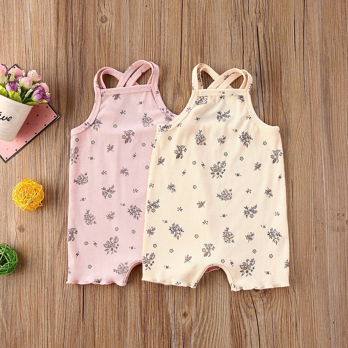 新作 通気性のあるベビーノースリーブロンパースサマースウィートスタイルベビーボーイズガールズフローラルプラントプリントクロスネックサスペンダージャンプスーツ