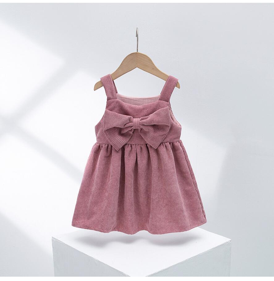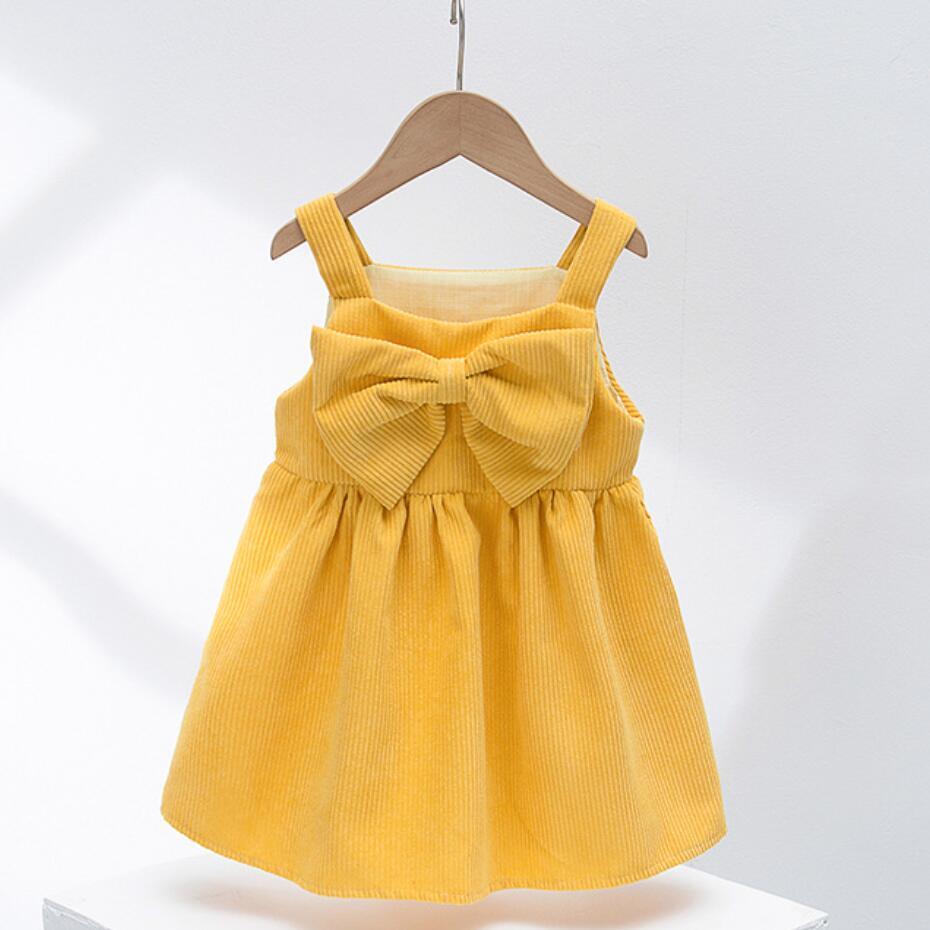 新作 サウスベイビーガールノースリーブコーデュロイドレス無地ビッグボウノットストラップドレスガールズドレス2-6Y子供服