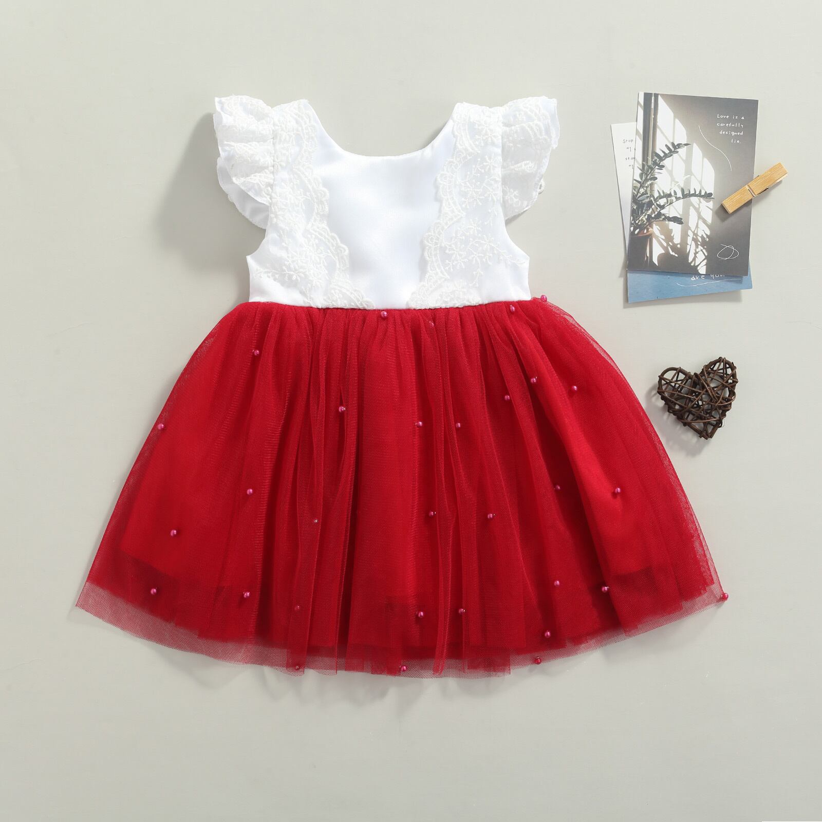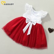 新作 Ma& Baby6M-6Yクリスマスレッドドレスガールズ幼児子供キッズガールズチュールパールパーティーバースデーチュチュドレスクリスマス2021