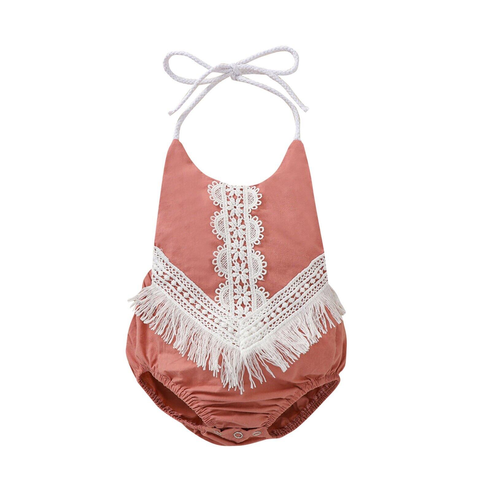 新作 生まれた赤ちゃんの女の子ホルターボディスーツ夏のノースリーブバックレスかぎ針編みレースTelワンピースジャンプスーツ服