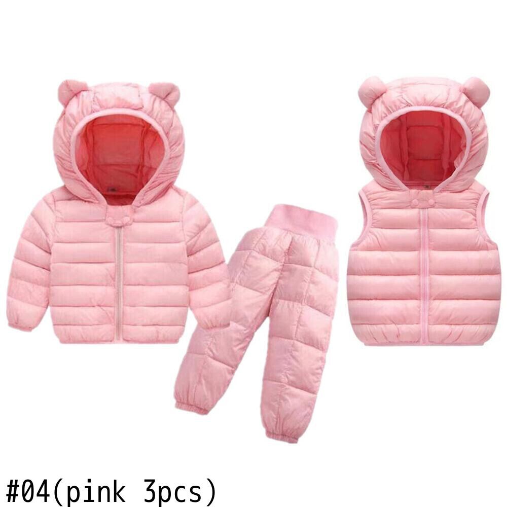 新作 冬の3pcs子供セットキッズワッドジャケットウォームフェイクダウンジャケット+ベスト+パンツベビーガールズスノースーツコートボーイズオーバーコート
