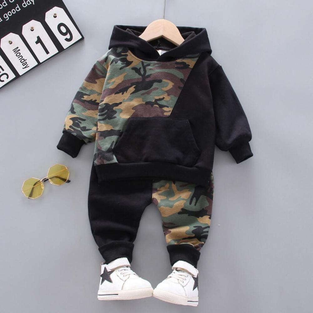 新作 ボーイトラックスーツ洋服セットキッズ春秋コットンスクールスポーツカモフラージュスーツキッズセット12 3 45年