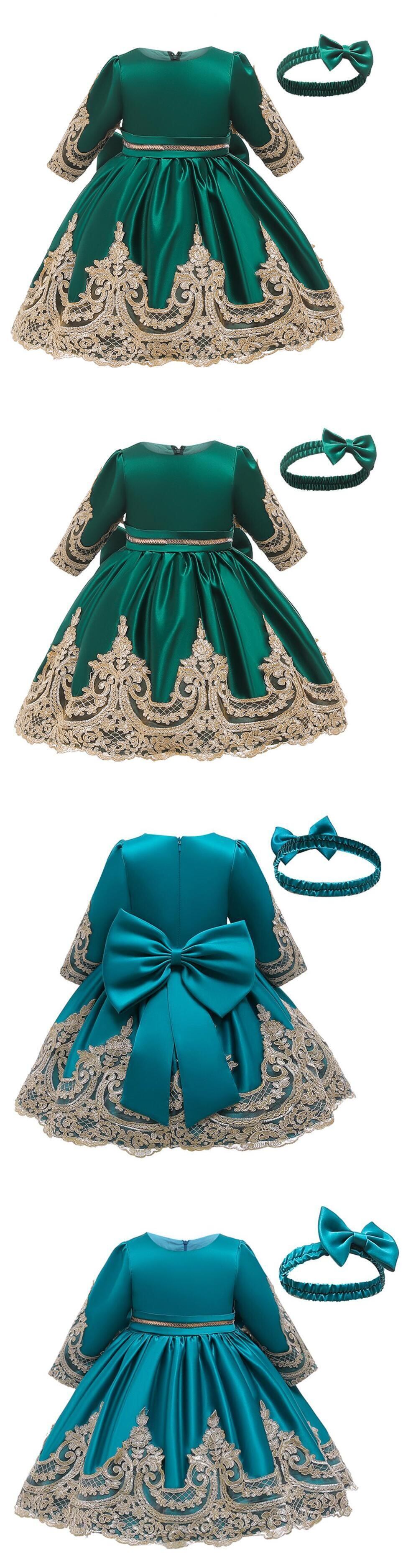 新作 クリスマス年の子供女の子ビッグボウノット幼児服長袖女の子生まれのベビードレスVestidos