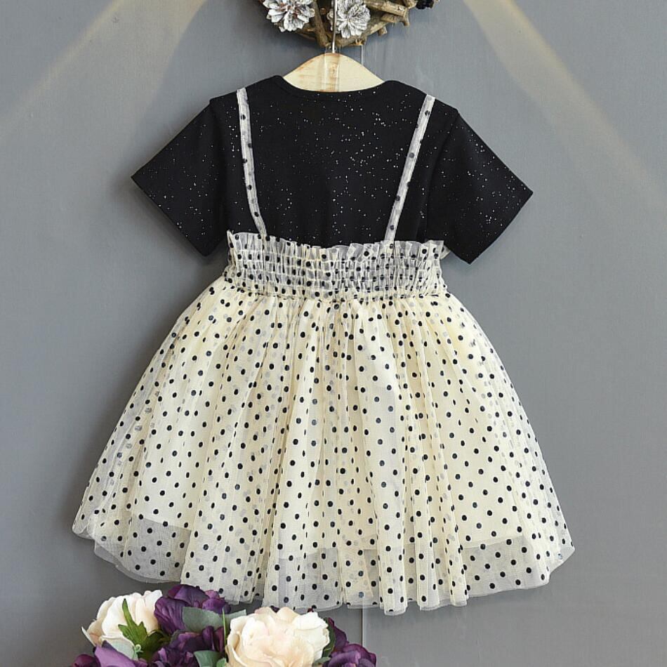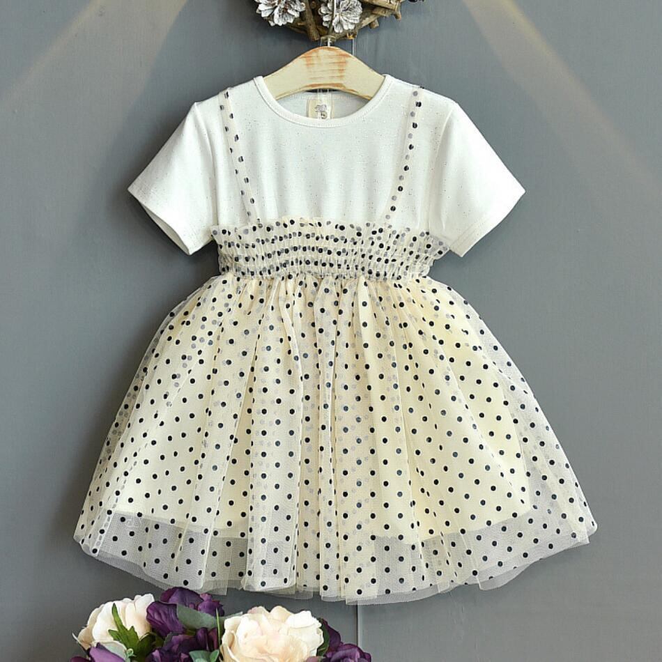 新作 かわいい女の子ドットドレス2021夏バージョン偽のツーピースドレス子供服女の赤ちゃん2-6歳