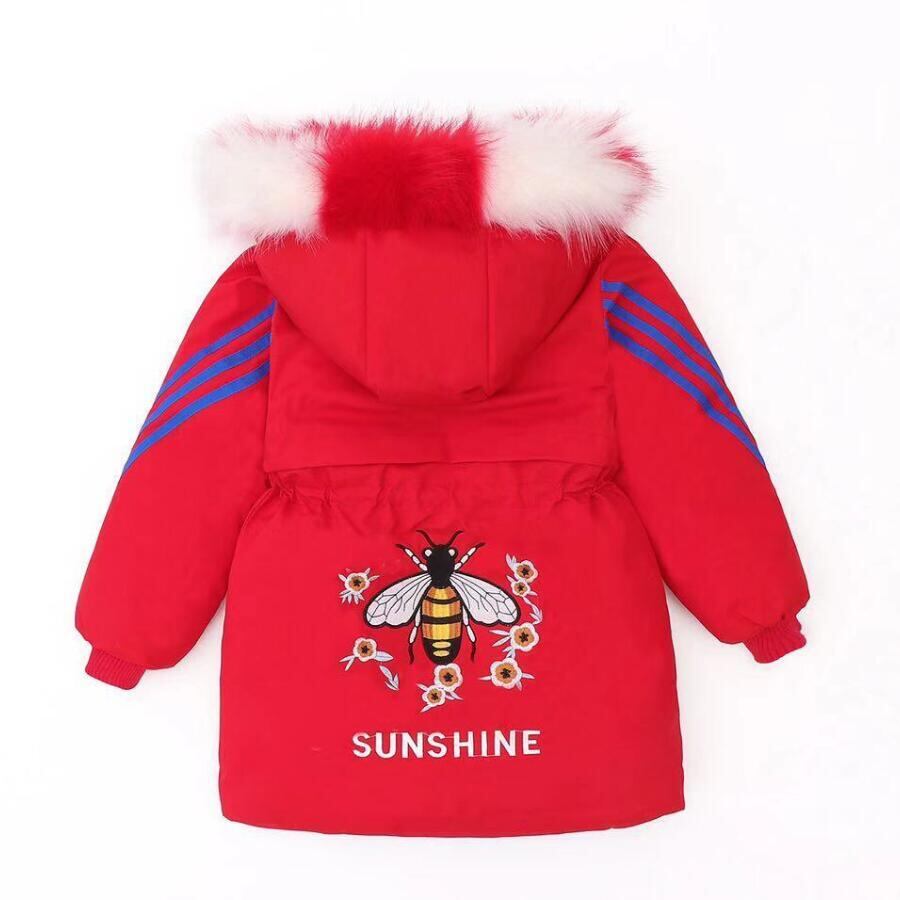新作 2020 WinterGirのダックダウンジャケット子供用ロングモデルダウンコートガールジッパーフード付きファーコートウォームダウンジャケット